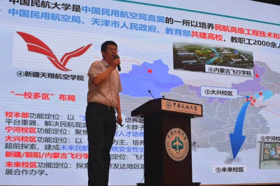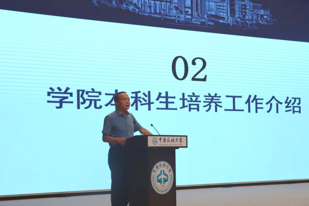 会议由张博书记的致辞开始,张书记与在场新生亲切互动,提出军训是大学生活的序幕,也是对意志、身体的考验,要求同学们严肃对待。接着张书记向新生们介绍学院概况,从历史、现状、未来三个角度依次分析,启示新同学们铭记中国民航的艰辛发展历程,不忘初心,充分利用学校优势师资力量、实验室资源,在三期叠加的复杂时代背景下努力解决民航技术“卡脖子”问题,激流勇进、敢于担当。张书记送给新生四个“自”,即自信、自律、自强、自省,鼓励新生同学走好人生奠基之路,探索知识,放飞梦想,胸怀天下, 展翅高飞。