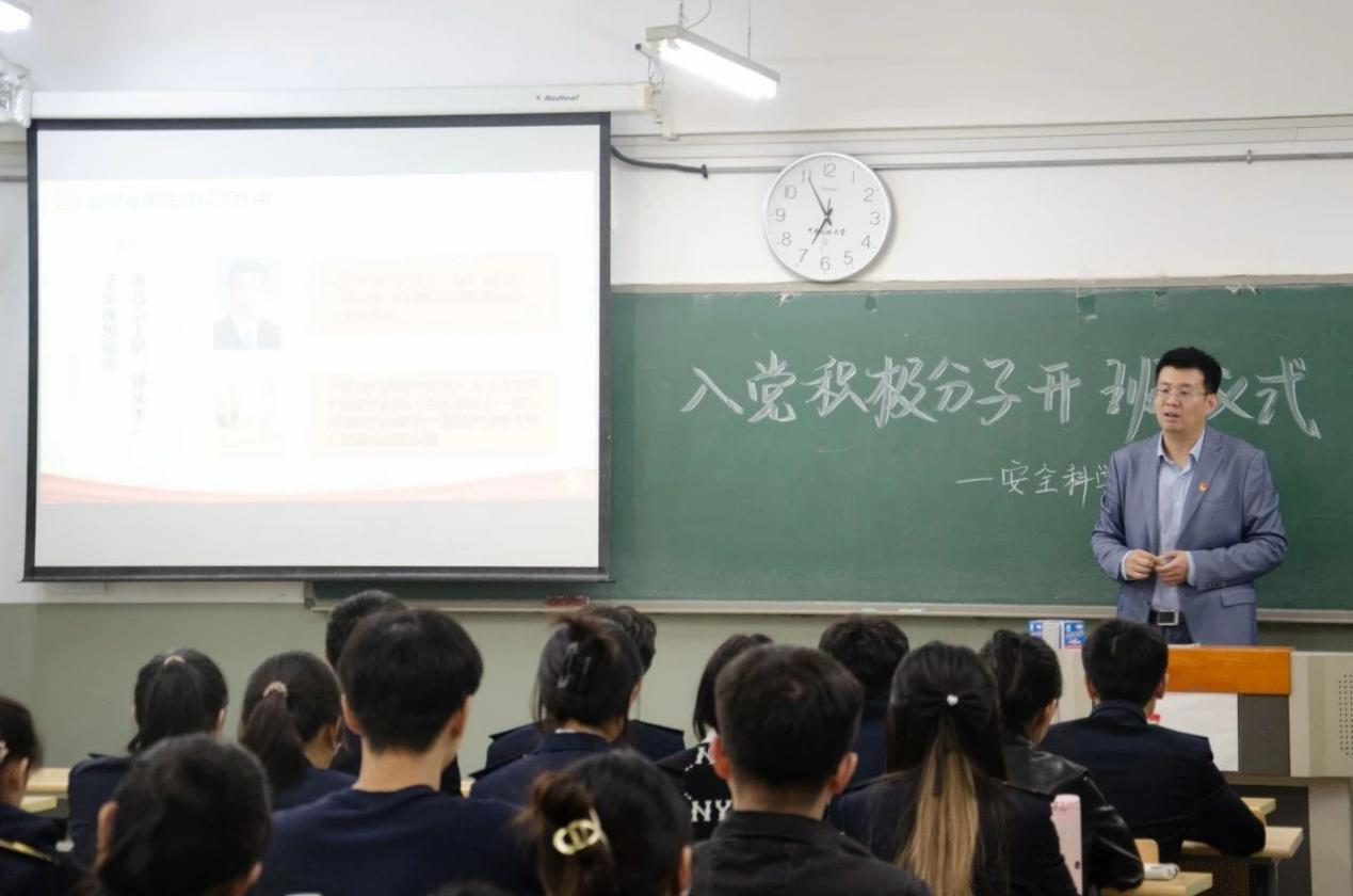 为贯彻落实习近平新时代中国特色社会主义思想和党的二十大精神,切实加强对入党积极分子的培养和考察,安全科学与工程学院于11月1日在北教四-307举行2023年秋季入党积极分子党课开班仪,学工办主任杨涛、辅导员李笑妍、李泰安和张翰伟老师出席了此次积极分子党课开班仪式。
