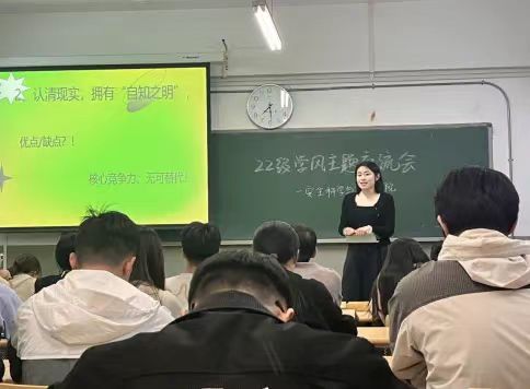 会议一开始,范文雅学姐讲述了自己大学四年的学习经验,学姐说在日常学习过程中,找老师划重点,学习ppt,只能对知识有一个笼统的概念,然后她具体分享了自己的方法,在课后,自己复习一遍课本,之后再看ppt,完成课本后的练习题,可以保证自己对知识熟练地掌握。其次,可以大胆地去尝试评奖评优,大创和各种竞赛,她也说明了自己对于各项比赛的态度,既然要做,就认认真真地去做,把握住这些提升自己能力的机会,建议尽量参加与自己专业和兴趣有关的项目,不要糊弄,认认真真的熟悉每一个步骤。最后,她也谈到,到了大三就要认真的去考虑自己的未来,到底是考公,考研还是考编,每个人都要做出最适合自己的道路,不要去盲目跟风,适合自己的才是最好的,如果决定考研,那么一定要过四六级,而且六级的分数越高越好。当然如果对未来感到迷茫,也可以去找那些成功上岸的学长学姐去取经。