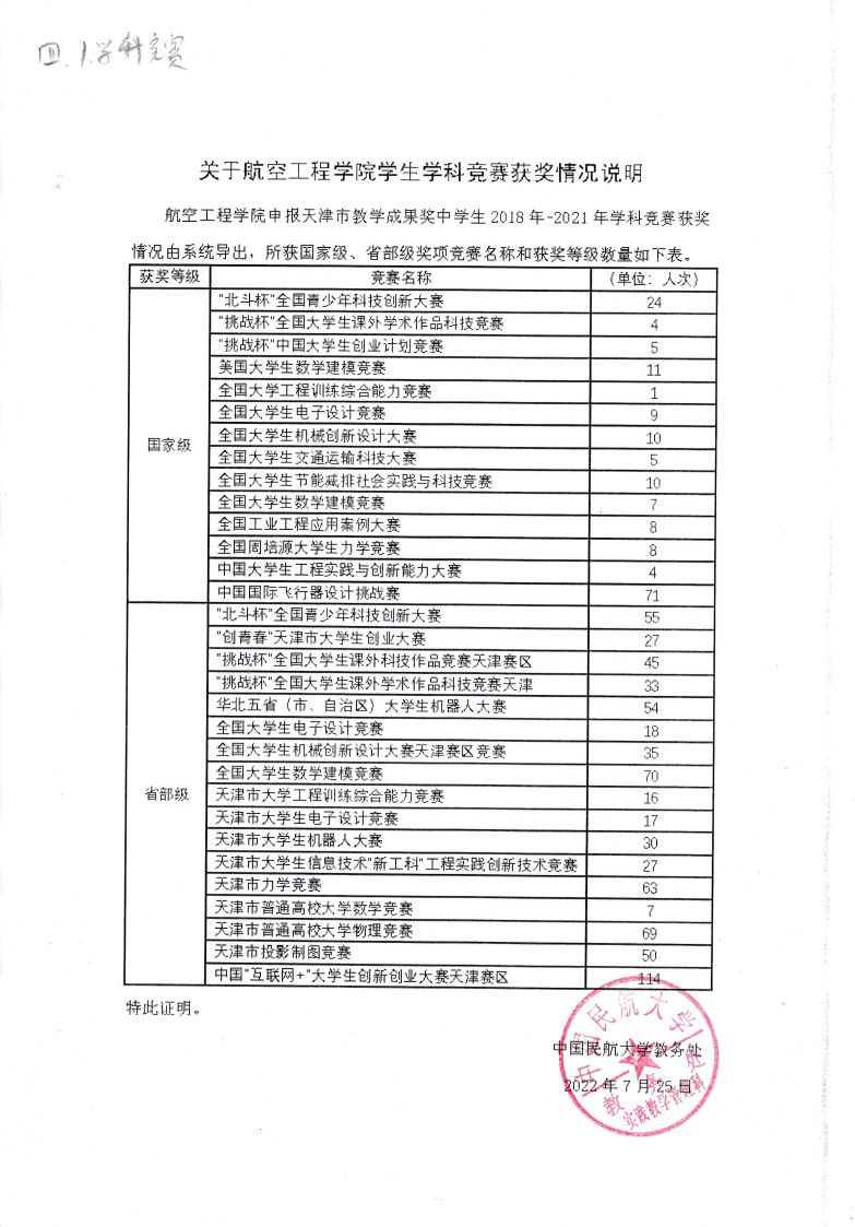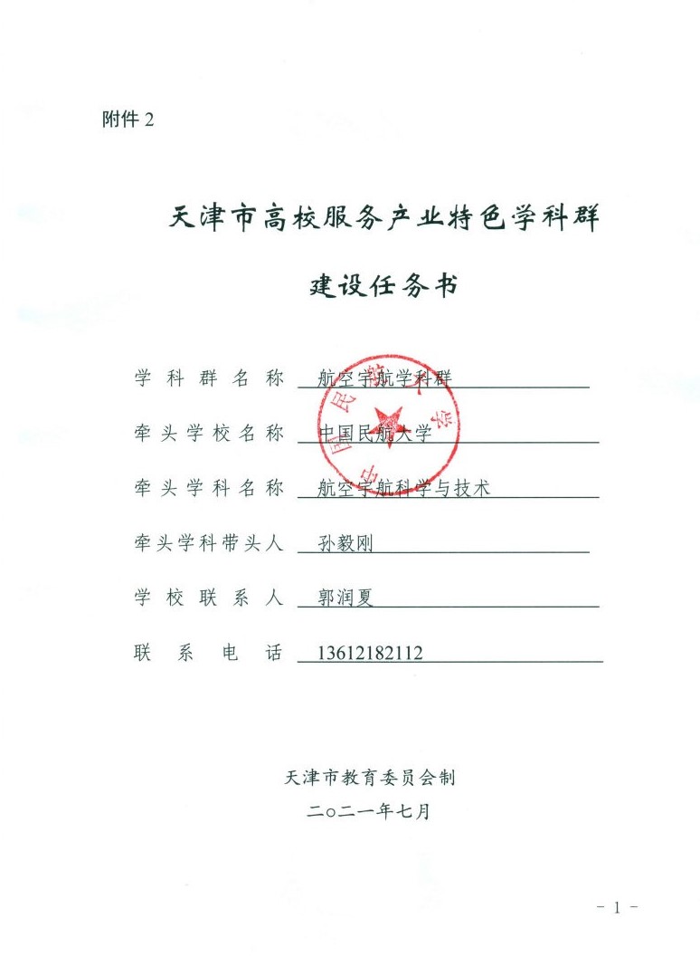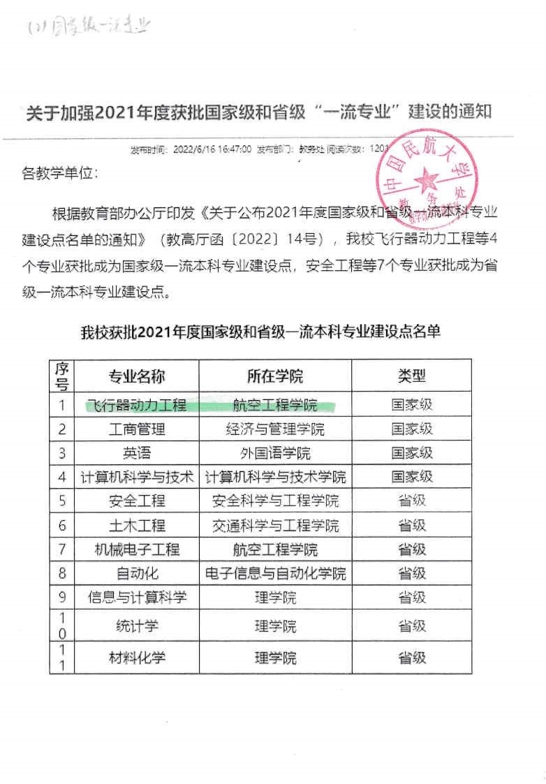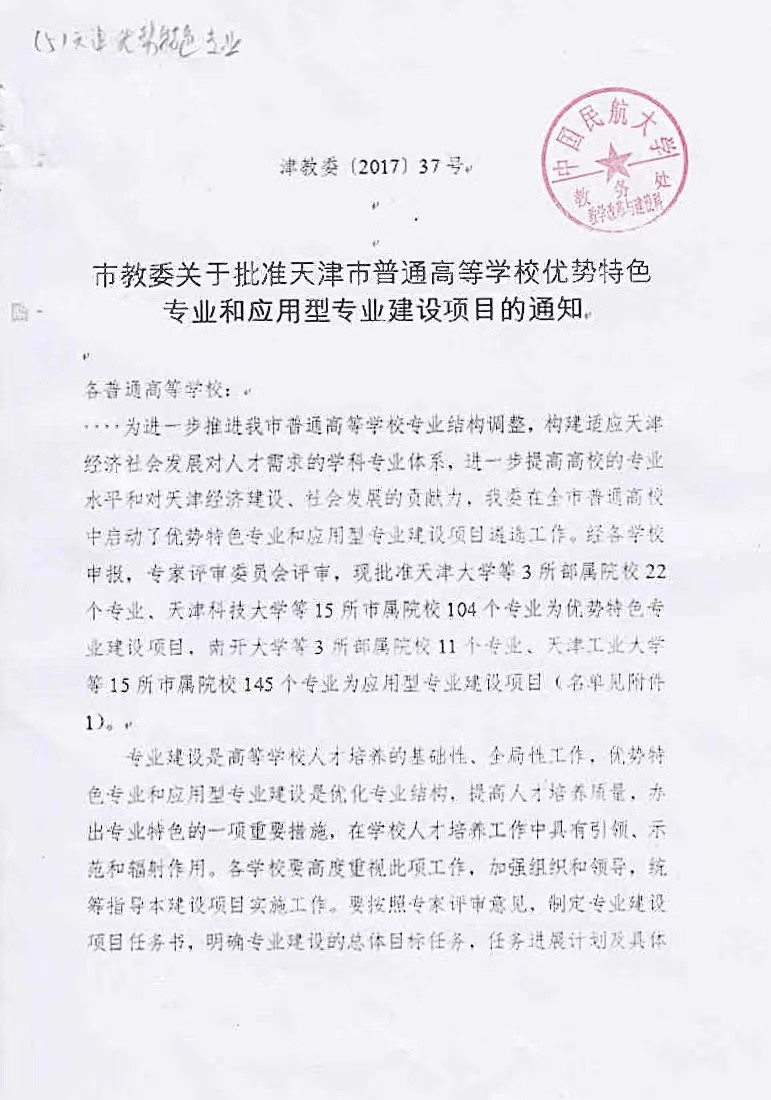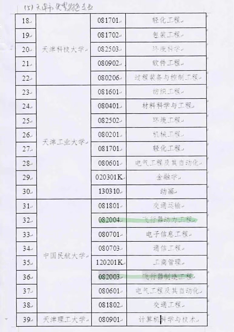 (3)天津市一流本科专业(飞行器动力工程专业、飞行器制造工程专业)