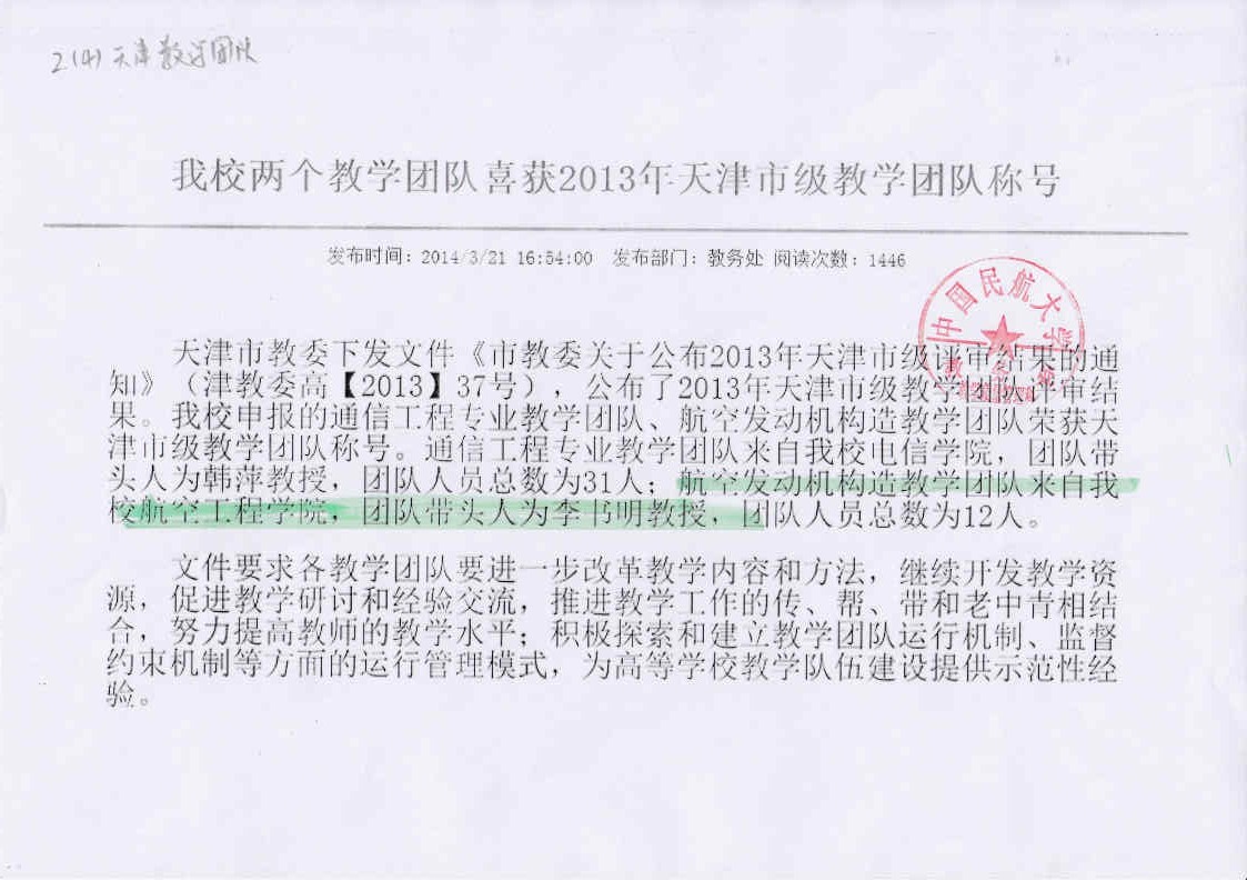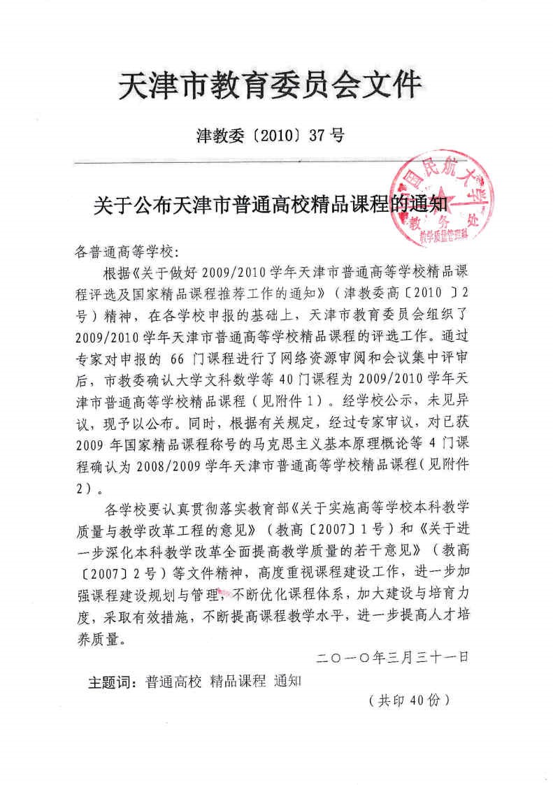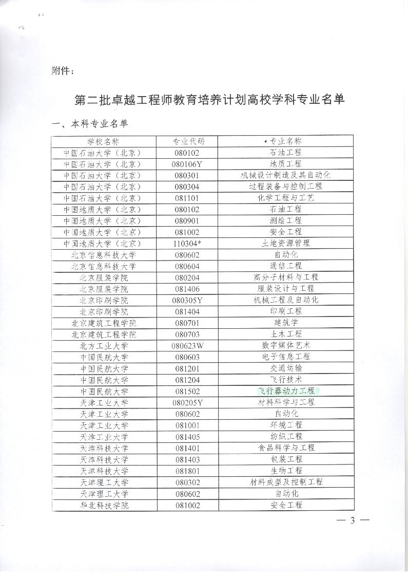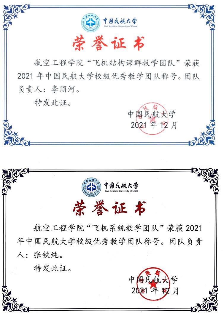 (3)天津市一流本科专业(飞行器动力工程专业、飞行器制造工程专业)