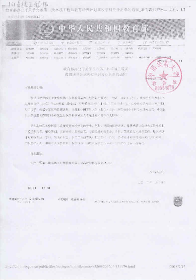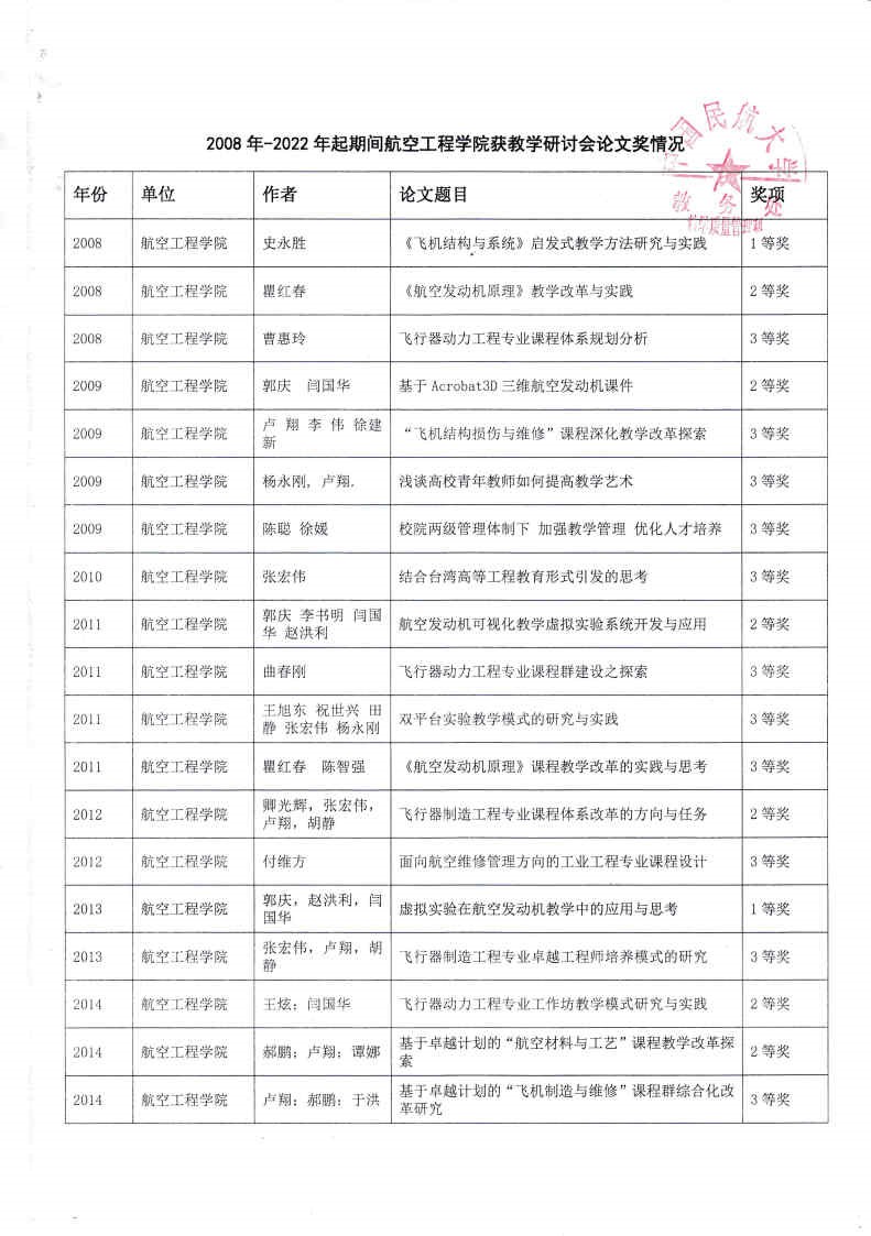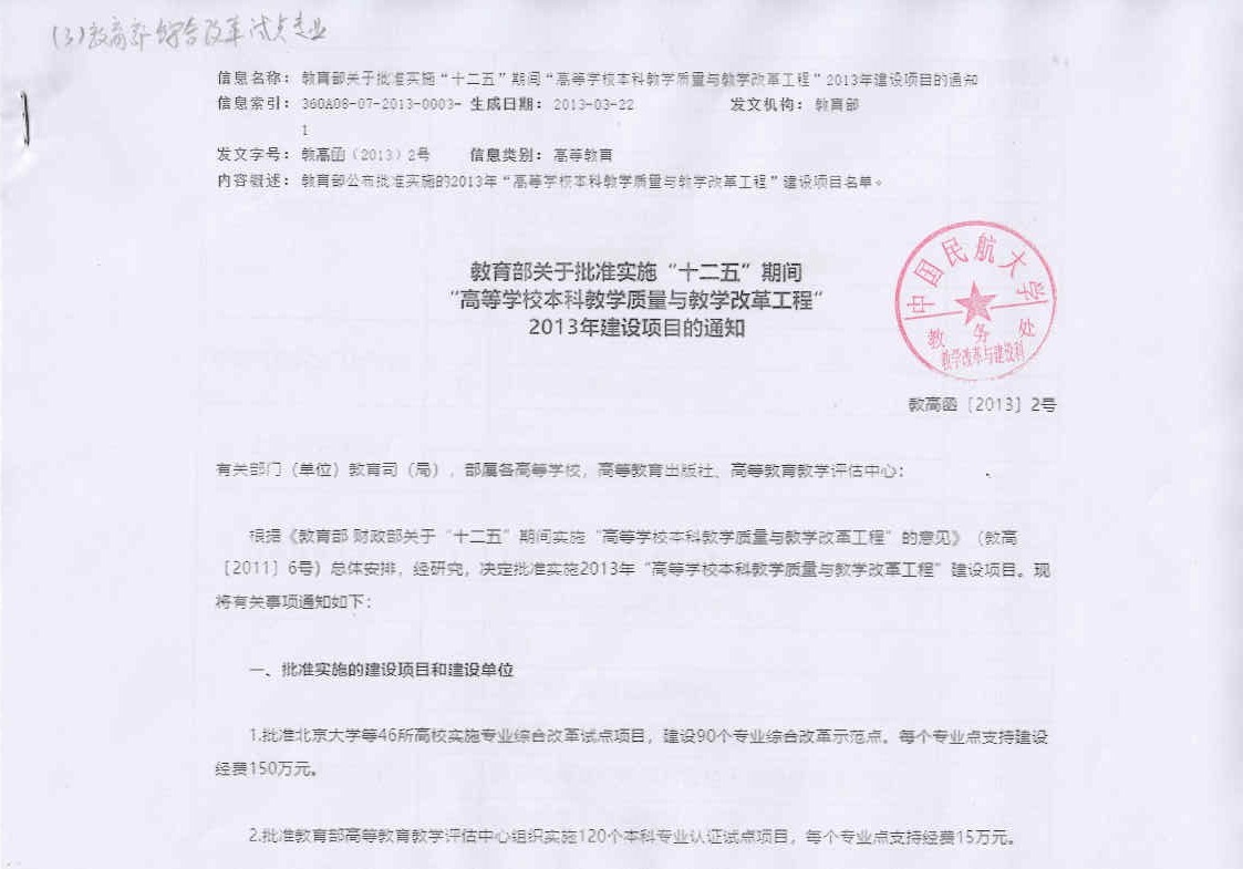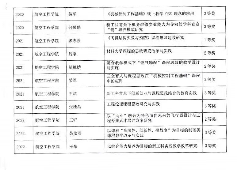 (3)教育部综合改革建设试点专业(飞行器制造工程专业)