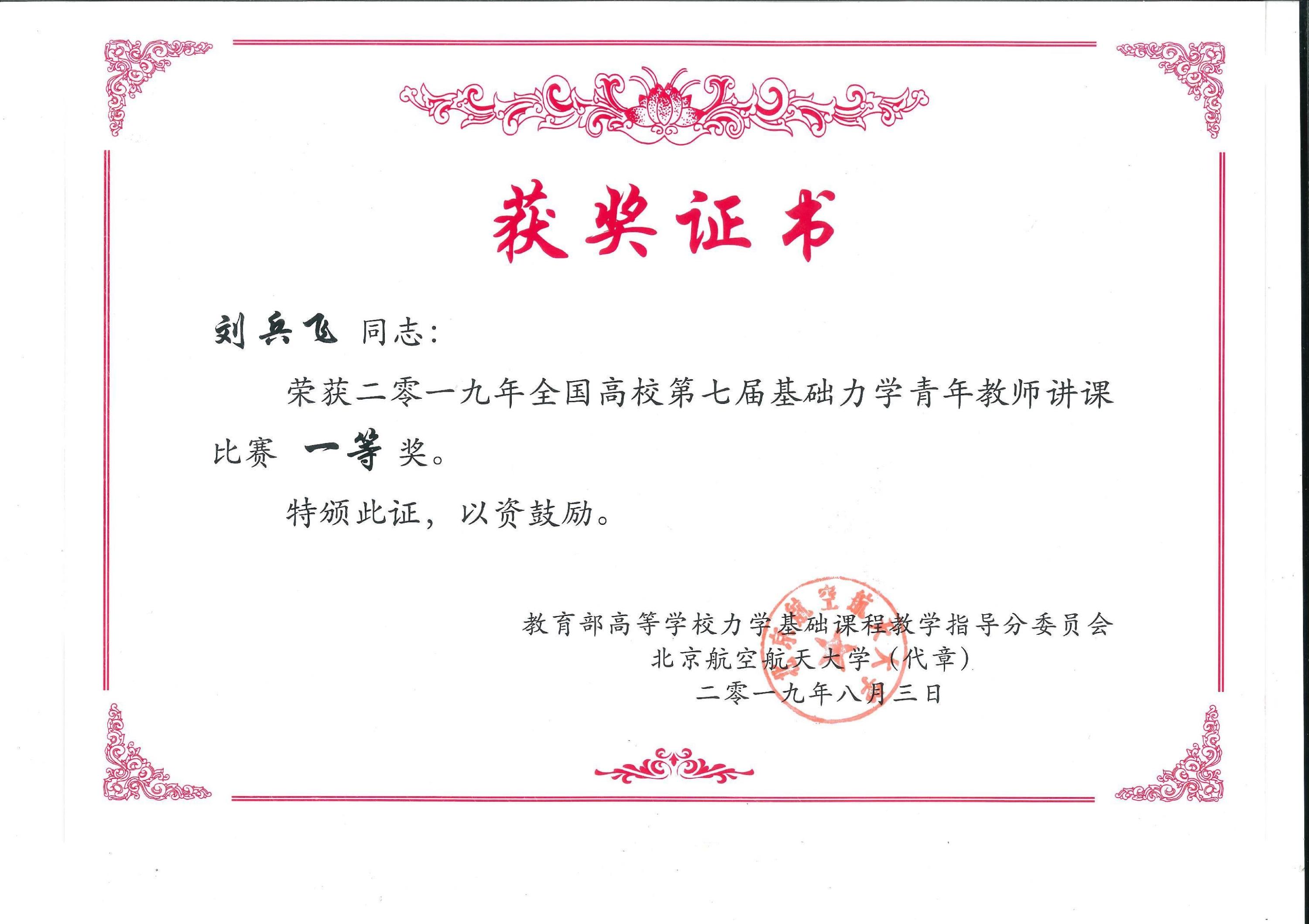 (2)第七届全国高校基础力学青年教师讲课比赛一等奖