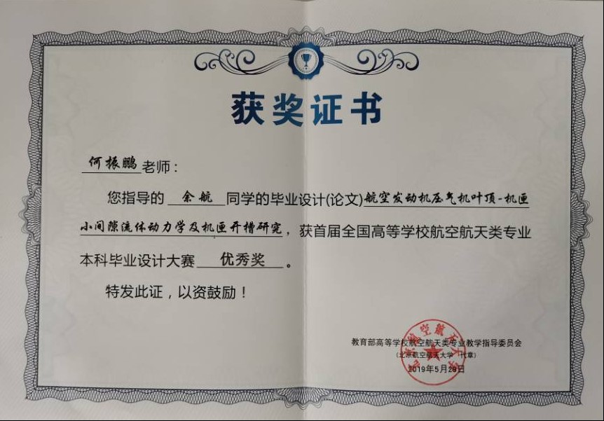 (3)首届全国高等学校航空航天类专业本科毕业设计大赛优秀指导教师