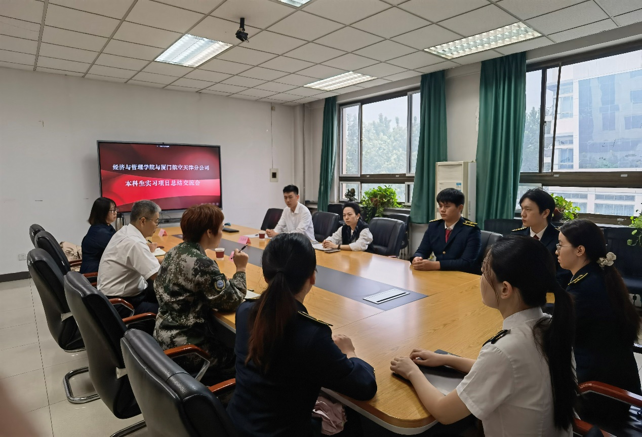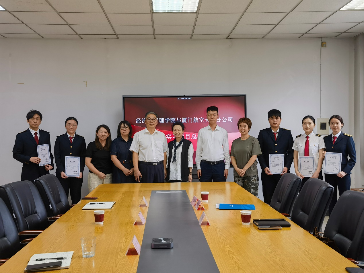 经济与管理学院党委书记许天牧对厦门航空有限公司各位领导、带教老师,经管学院各位指导老师,以及所有参与实习项目的同学们表达了感谢,强调此次实习项目是在所有人的不懈努力和付出下取得的成功,期待接下来通过不断深化校企合作,为行业培养更多具有实践经验和创新能力的高素质人才。