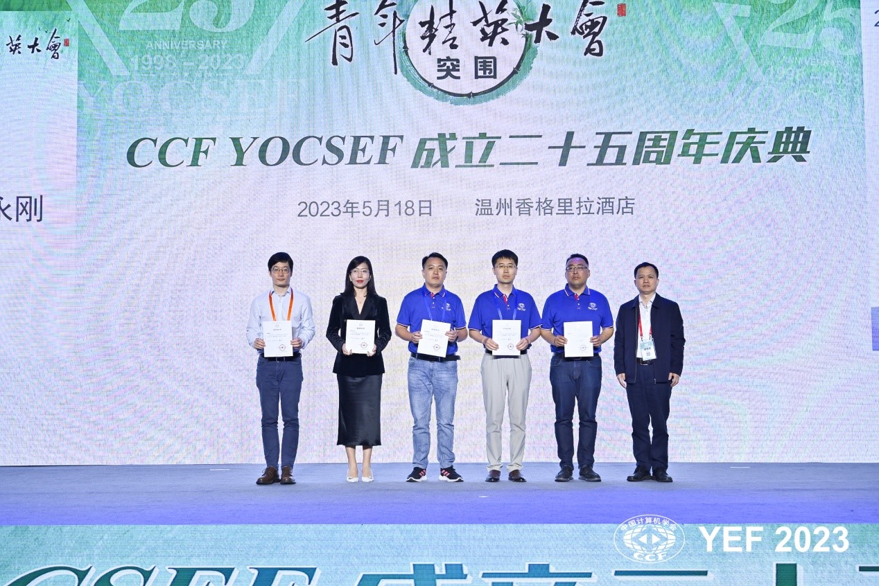 图2 左三为刘才华获得CCF YOCSEF2022-2023年分论坛优秀学术秘书奖