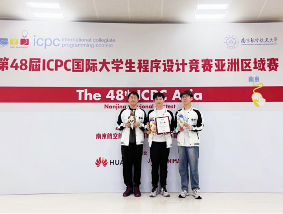 日前,第48届ACM-ICPC国际大学生程序设计竞赛亚洲区域赛-南京站于南京航空航天大学隆重举行,来自国内各高校的342支队伍参赛同场竞技。计算机学院教师张智带领学生崔凌宵、陆浩楠、孔子豪组成的“想与写与蛙”队,与北京大学、清华大学、浙江大学、上海交通大学、北京航空航天大学、天津大学等985高校的多支队伍同场竞技,经过5个小时的高压思维激战,获得银牌。