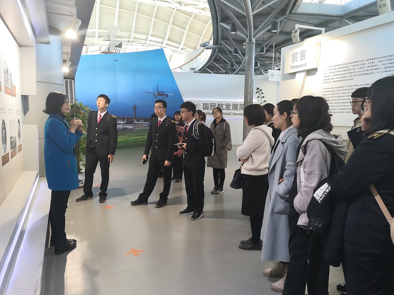 随后,我们进入了中国航空发展史的展览区,在历史的长河中回望民航精神,感叹中国民航的快速发展。中国民航的发展也可谓是一部血泪史。从冯如将军的一切失误都是必经的过程的壮烈,到宋美龄夫人随试飞人员上机的勇气,再到死亡“驼峰”航线上无数年轻志士的坚毅,无不透露着在中国民航的发展史上一代代民航人所做出的牺牲与奉献。同时中国也积极开创民航外交,从力排众议与巴基斯坦建立航线、齐心协力建立标准化大机场,到现在与多国积极沟通建立起于亚、欧、美的多条国际运营航线,中国民航一直在积极寻求与外交流。