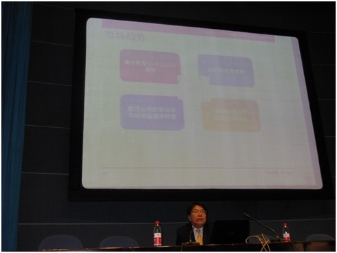 张谦华博士作了题为“未来航空业发展的机遇与挑战”的报告。张博士根据香港航空公司的实际案例,介绍了民航运输业的历史发展、当前现状、未来市场预测。通过对比其他交通运输方式,分析了民航业当前所面临的挑战,并为如何应对来着各方面的挑战提出了合理建议。张博士详尽地介绍了香港机场和航空公司采用的MRO(即:Maintenance维护、Repair维修、Operation运行)模式,指出大陆和香港在航空运输管理上还需要更为密切的交流与合作。