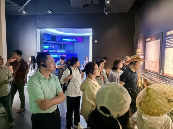 在白洋淀文化苑内,大家还参观了雁翎队纪念馆,馆内通过大量丰富、珍贵的历史照片、文献资料、流传下来的实物,以及运用电光声、三维动画立体成像、大屏幕投影等现代化艺术手段,生动再现了闻名中外的白洋淀雁翎队英勇顽强的光辉战斗历程。