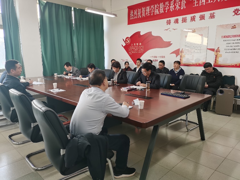 12月21日下午,校党委书记曹胜利深入理学院调研指导工作并召开座谈会,校党委常委、统战部部长葛维建、组织部常务副部长于金艳、宣传部部长朱瑞新等陪同参加调研, 理学院班子成员、全体支部书记参加座谈会。