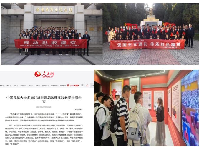 “思想道德与法治”教学创新团队经过持续沉淀教学成果,凝聚教学共识,整合力量,现已初步成为马克思主义教学“6A”型教学创新团队。团队首创的移动式教学法被教育部推广,“移动教学法在高校思想政治理论课中的创新应用”被教育部纳入全国择优推广计划,并被中国教育报、中国民航报、学习强国等平台报道,已在马克思主义学院全部思政课推广应用。