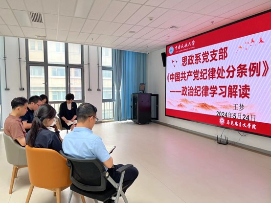 为加强《中国共产党纪律处分条例》学习,思政系党员教师于2024年5月24日对党的政治纪律和工作纪律进行深入学习。本次学习以党课形式进行,旨在促进思政系全体党员提高政治站位,提升思想觉悟。