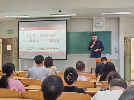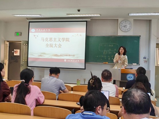 5月31日下午,马克思主义学院在南教1-202召开全院大会,此次大会旨在传达并部署关于加强青年工作、深化党纪学习教育、推进本科教育教学审核评估评建等一系列重要工作。会议由主管教学副院长主持,学院全体教职工参会。