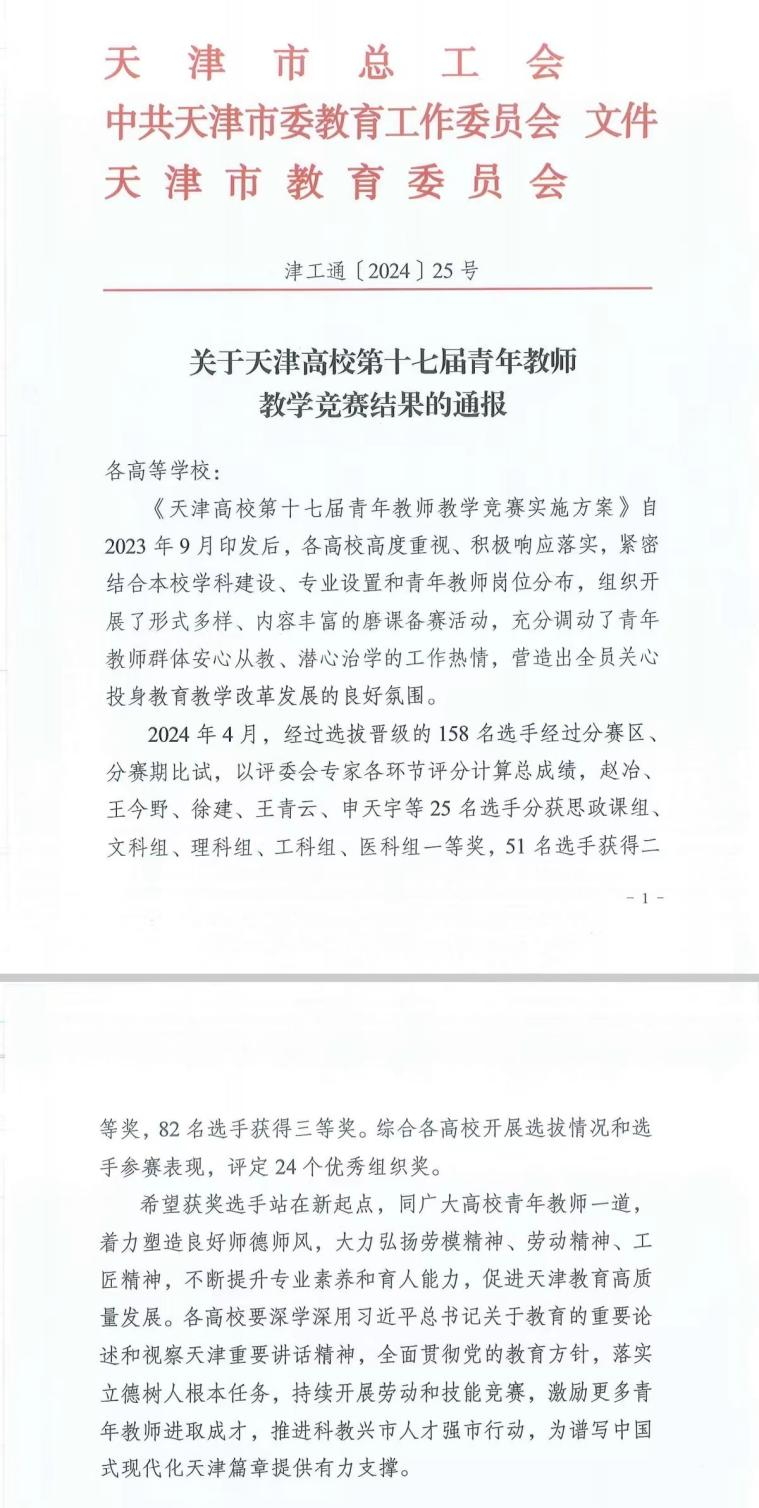日前,《关于天津高校第十七届青年教师教学竞赛结果的通报》正式公布,我校马克思主义学院青年教师张慧捷荣获天津市第十七届青年教师教学竞赛一等奖、最佳教学设计奖。