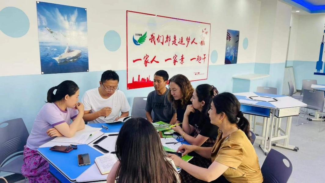 “银龄计划”支教团的王绿平是援疆团队中教龄最长的教师之一,有着丰富的教学经验,从徐州师范大学数学系毕业后一直在江苏连云港担任高中数学教师。关于磨课指导工作,王绿平有着独特的心得体会,她说:“老师们最大的进步是从满堂灌的教学方式逐渐转化为以学生为主体,尤其是物理老师卡日买提,她能把枯燥的知识变得生动,在讲重力势能做功时,她让学生分组活动后汇总,实现了学生的主动参与。”