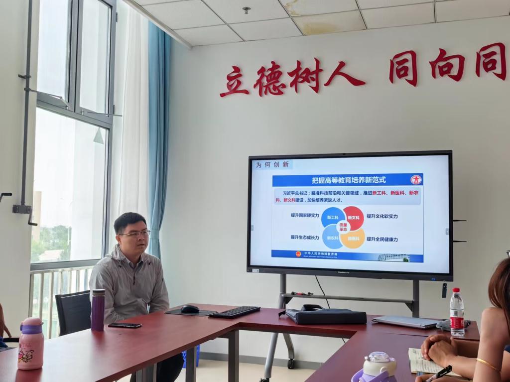 会上,王琼老师以“课程思政解锁育人密码,教学创新培养一流人才”为题做专题报告。他围绕赛制解读、备赛参赛的过程与经验,课程建设及个人成长的心路历程等内容展开了深入分享。王老师语言生动幽默,分享的内容全面详实“有干货”,毫无保留地给老师们分享了多年积累的教学巧思、参赛经验及此次教学创新大赛的第一手材料,与会教师对标对表,深刻反思,受益匪浅。