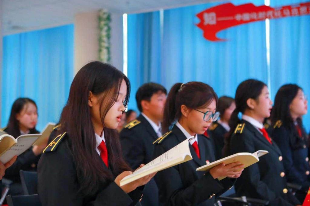 全体师生庄严诵读《共产党宣言》。马克思主义理论之光带来了中华民族的希望。这份马克思主义纲领文献如同灯塔,坚定人们理想信念,照亮了无数共产主义者的奋斗之路。在场师生重温初心,从中汲取了强大精神动力,坚定了决心意志,明确了所肩负的历史使命。
