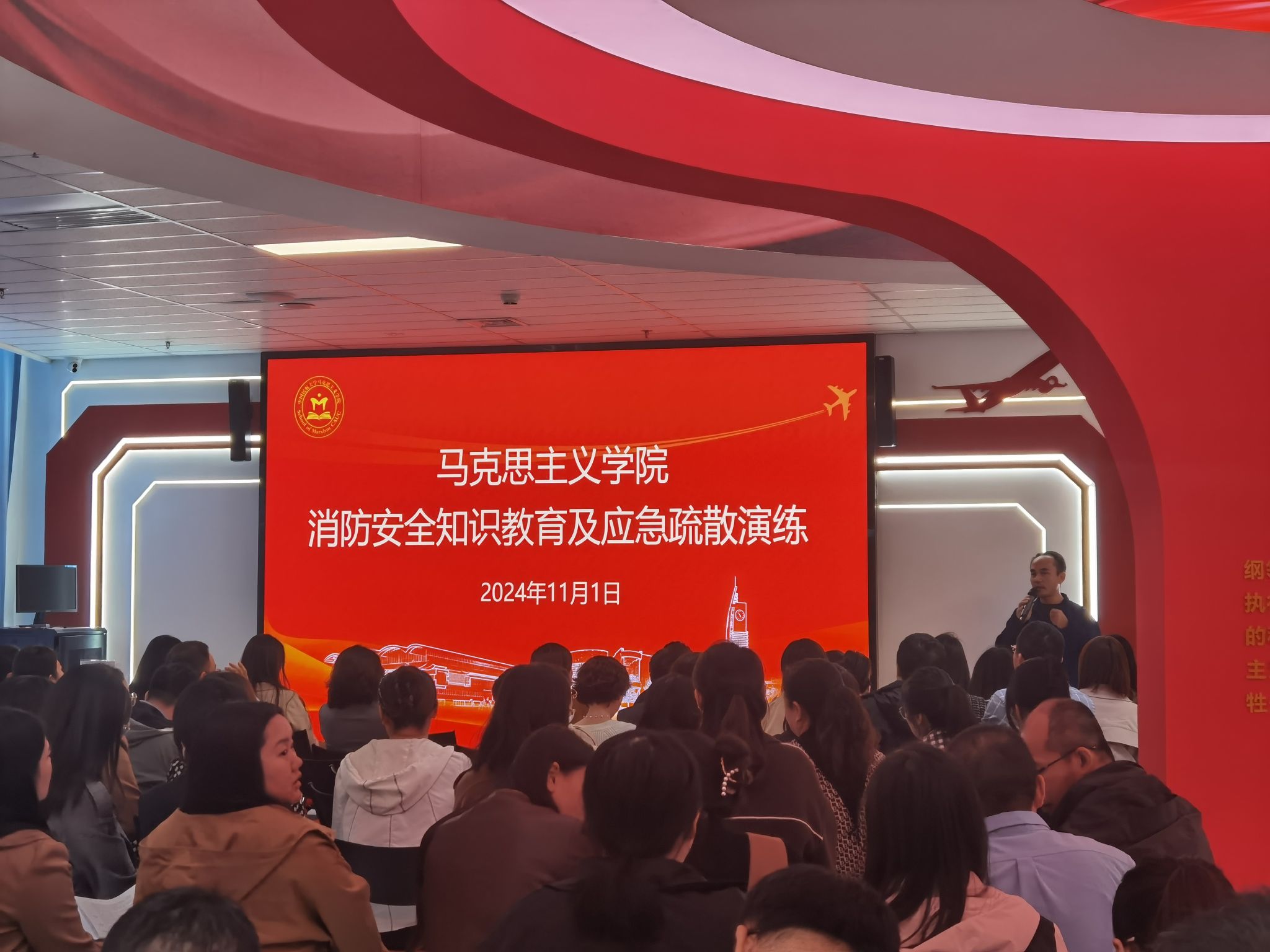 为贯彻落实习近平总书记关于安全生产的重要论述,进一步增强马克思主义学院教职工的消防安全意识,提升应急处置能力,在“11.9全国消防日”之际,马克思主义学院于11月1日开展消防安全知识教育和应急疏散演练。学院全体教职工参加,保卫处相关负责老师到场指导。