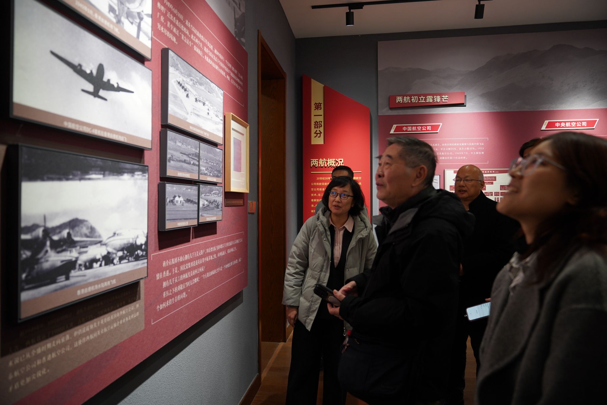 陈绍曾先生参观了实践基地关于两航起义的展览,对于基地面向广大青年学子宣传和弘扬两航起义精神的实践育人价值和功能予以高度肯定。作为“一个有重大意义的爱国举动”,两航起义不仅在政治和军事上打击了国民党政权,为新中国民航事业的创建发展奠定了基础,也向世人展示了中国共产党领导下的爱国主义壮举的伟大力量。两航起义所彰显的爱国主义精神和敬业创业精神激励着一代代民航人奋发图强,成为推动民航事业不断前进的精神力量。