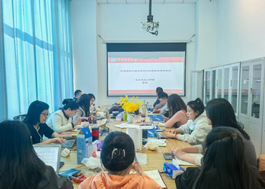 形策教研室党支部瞿琼同志作题为“全面推进中国式现代化的国际机遇与挑战”的专题报告,系统分析了当前国际力量对比、大国战略博弈、国际秩序变化等,及其对中国式现代化所带来的具体影响和我国的应对之策。