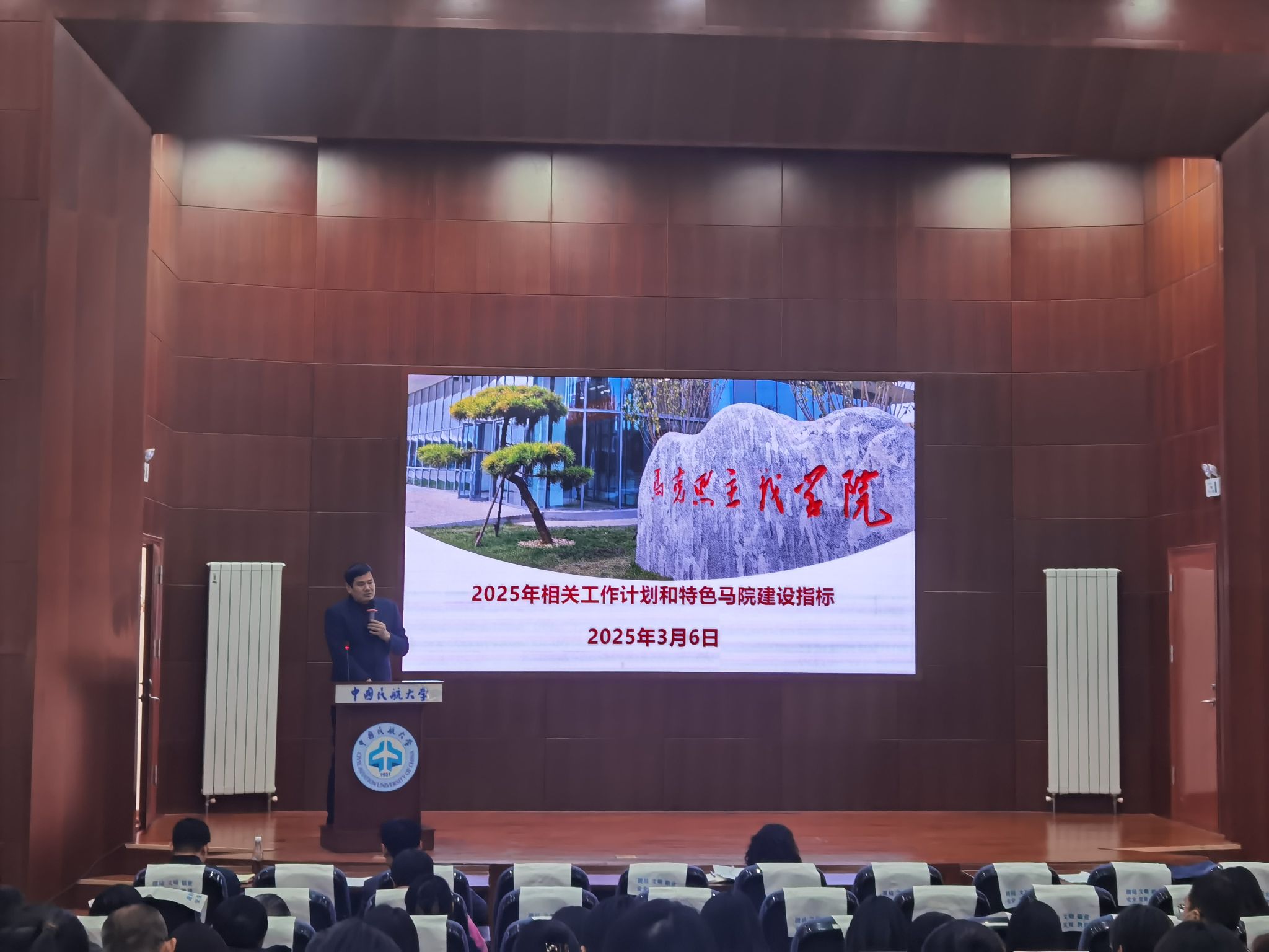会上介绍了学院2025年工作计划,重点围绕特色马院建设、思政课程AI建设、马克思主义学院首届研究生招生培养、思政专业建设、举办高端论坛、思政课程与课程思政协同育人等十项重点工作进行了布置和安排。