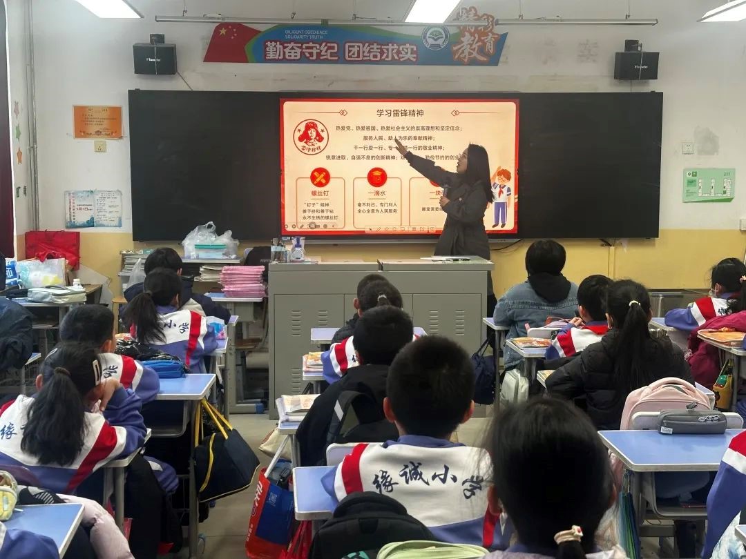成竹雅老师把雷锋精神和当下最火的哪吒精神联系起来,让学生们深刻理解一个人只有当他把自己和集体融合一起的时候才能有力量,在学习奋斗中只要信念坚定,就没有什么能够阻挡我们前进的步伐,同时鼓励学生做永不生锈的螺丝钉,编永不褪色的混天绫,在实践中书写新时代少年传奇。