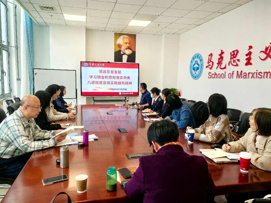 为进一步强化党员作风建设,思政系党支部根据学校和学院党委要求,于3月28日下午开展深入贯彻中央八项规定精神学习教育党日活动。此次学习聚焦学习领会和贯彻落实中央八项规定及其实施细则精神,旨在全面提升系师生党员的政治素养和纪律意识。会前,党支部向每位党员下发《习近平关于加强党的作风建设论述摘编》学习资料。