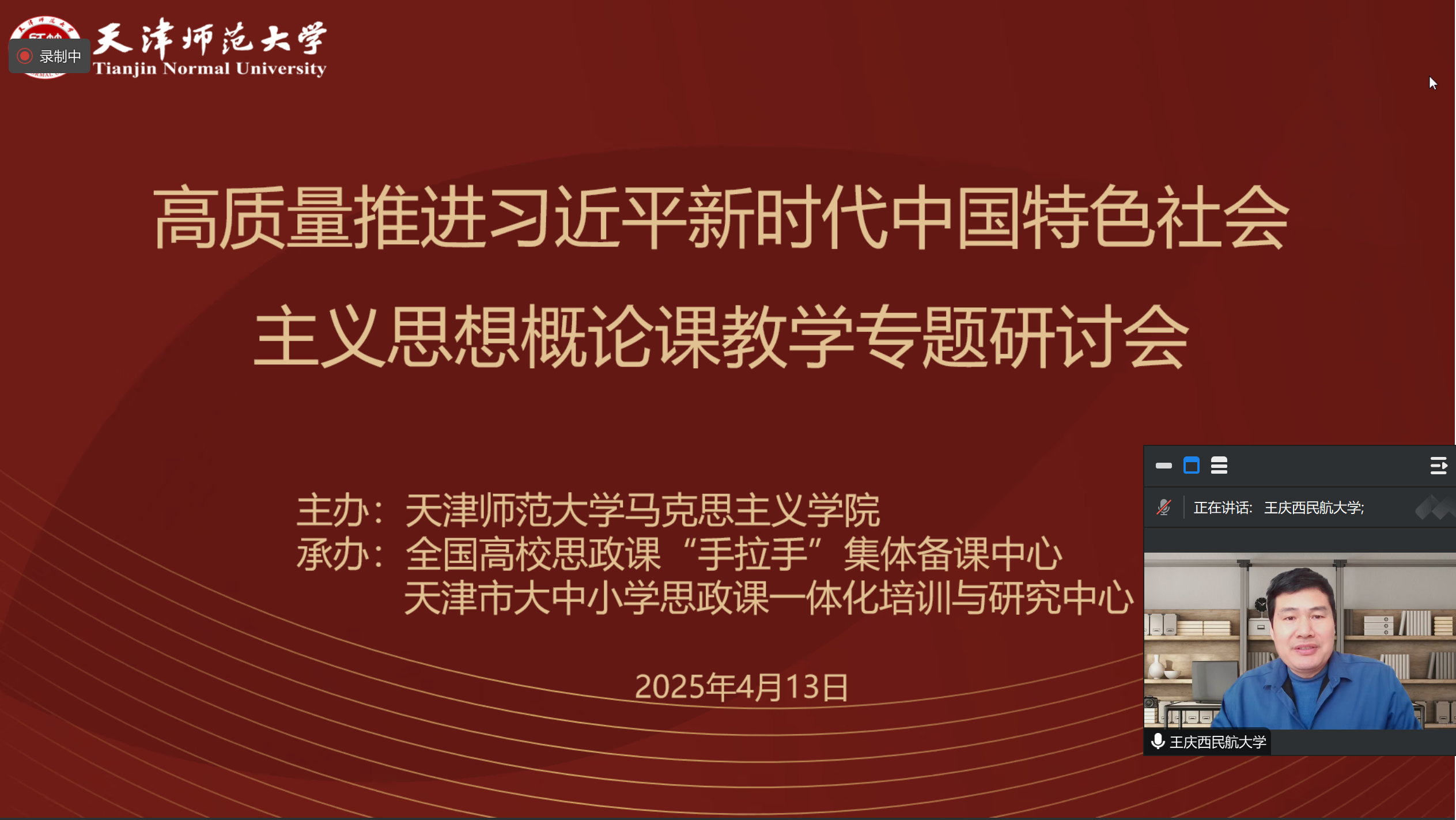 为全面提升习近平新时代中国特色社会主义思想概论课教学质量,天津师范大学马克思主义学院联合全国高校思政课“手拉手”集体备课中心、天津市大中小学思政课一体化培训与研究中心,于4月13日上午召开“高质量推进习近平新时代中国特色社会主义思想概论课教学专题研讨会”。会议历时4个小时,来自天津市各高校的马克思主义学院领导、教研室主任及骨干教师齐聚一堂,共同探讨习近平新时代中国特色社会主义思想概论课教学的创新路径,天津师范大学马克思主义学院院长李朝阳主持会议,王庆西院长受邀参会并做主题发言。