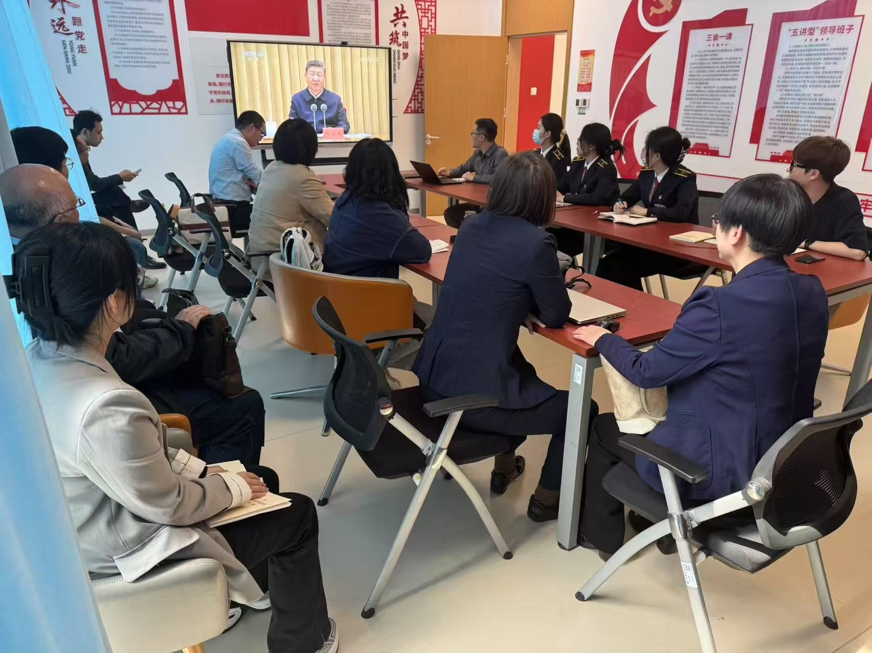 在“第一议题”学习环节,支部全体党员观看并学习了习近平总书记在中央周边工作会议上的重要讲话精神。大家一致认为,讲话为新形势下我国周边外交工作提供了战略指导和根本遵循,对于增强战略自信、推动构建周边命运共同体具有重要意义。