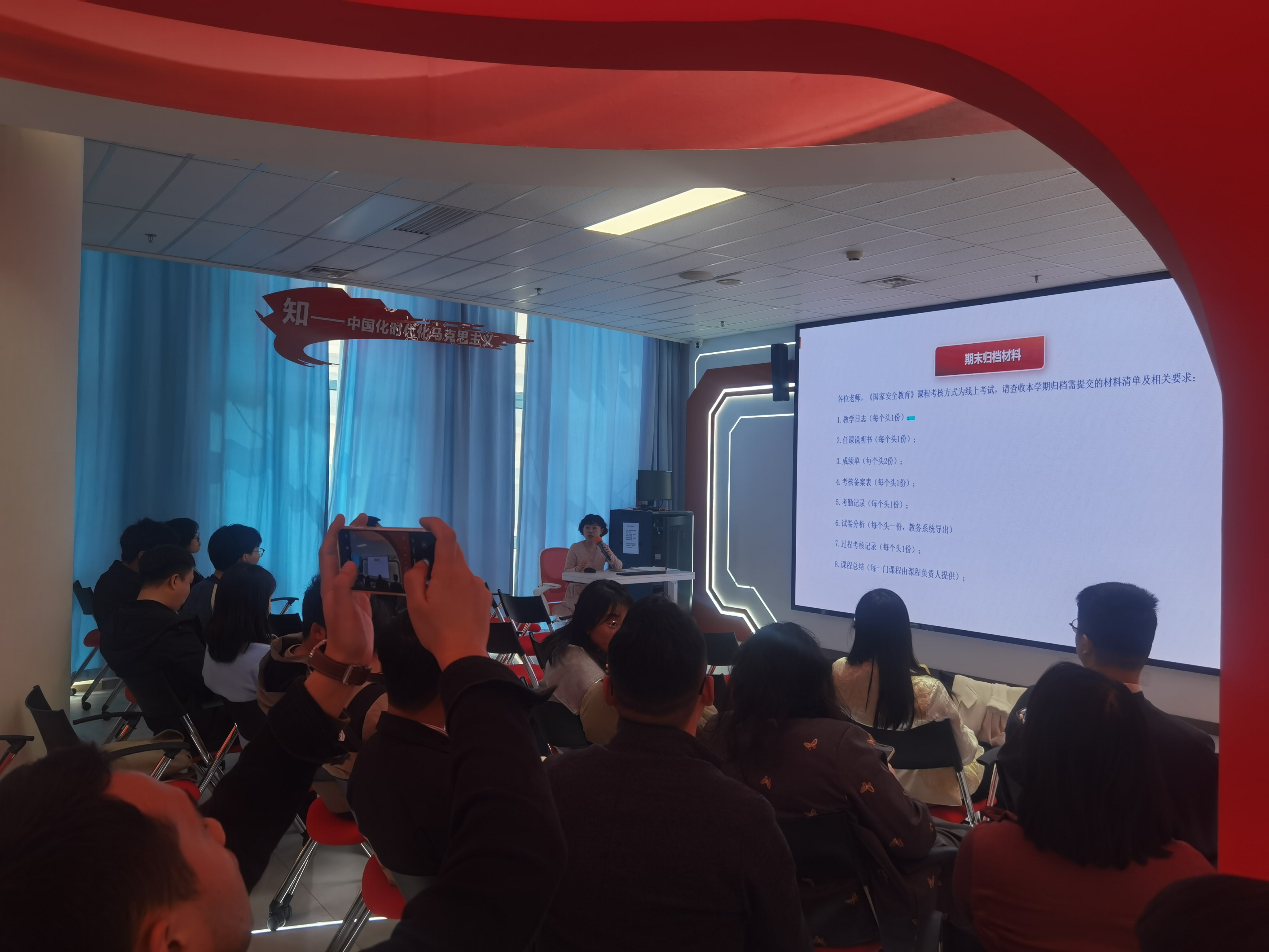 课程组负责人汪为老师就课程开设背景及意义、教学大纲重点、教材理论体系及授课思路进行了交流,并领学了上级部门关于组织开展2025年全民国家安全教育日活动的通知,倡议大家积极成为国家安全教育的学习者、宣传者和践行者。随后,学院教务科对期末归档安排进行了详细解读,强调要确保教学档案材料的完整性与规范性。