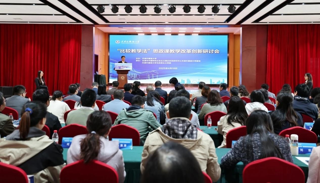 天津外国语大学党委书记周红蕾在开幕式致辞中指出,习近平总书记在全国教育大会上强调,要坚持不懈用习近平新时代中国特色社会主义思想铸魂育人,实施新时代立德树人工程。召开思政课教学改革创新研讨会是学校深入贯彻落实全国教育大会精神、《教育强国建设规划纲要》的重要举措,恰逢其时、十分必要。结合外语院校学生特点,要深入探讨思政课教学中“以何比较”“何以比较”等理论问题和实践路径,进一步把道理讲深讲透讲活,不断提高思政课的针对性和吸引力。