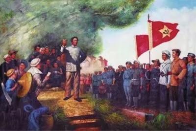 秋收起义“高高打出共产党的旗子”,以在湘东赣西发动各路合攻、攻打长沙为目标。9月初,毛泽东以中央特派员和秋收起义前委书记的身份在安源张家湾召开军事会议,正式组建工农革命军第一军第一师,下辖三个团5000人。9月9日,湘赣边界秋收起义爆发,起义军从江西的修水、安源、铜鼓等地出发,向长沙进攻。起义军遭到强敌的抵抗,损失很大,毛泽东果断改变原有部署,命令部队退到浏阳文家市集中。9月19日,毛泽东主持召开前委会议,经过激烈争论,否定了“取浏阳直攻长沙”的主张,决定把起义军向南转移到敌人统治力量薄弱的农村山区,寻找落脚点保存实力,再图发展。从进攻大城市转到向农村进军,这是中国革命发展史上具有决定意义的新起点。9月20日早晨,毛泽东站在文家市里仁学校的操场上,对着仅剩的1500人,满怀信心地讲道,蒋介石反动派好比一口大水缸,我们现在好比一块小石头,打几个败仗没有什么大不了,只要我们团结一心,依靠千千万万的工农群众,小石头就总有一天要打破大水缸。