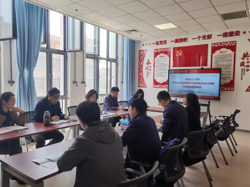 会议指出,要坚持以主题教育为主线,将主题教育与学院党建工作深度融合,与思政课建设深度融合,充分发挥马克思主义学院理论学习研究领航作用和文化传播平台推动作用,确保各项任务落实落地,主题教育取得实效。