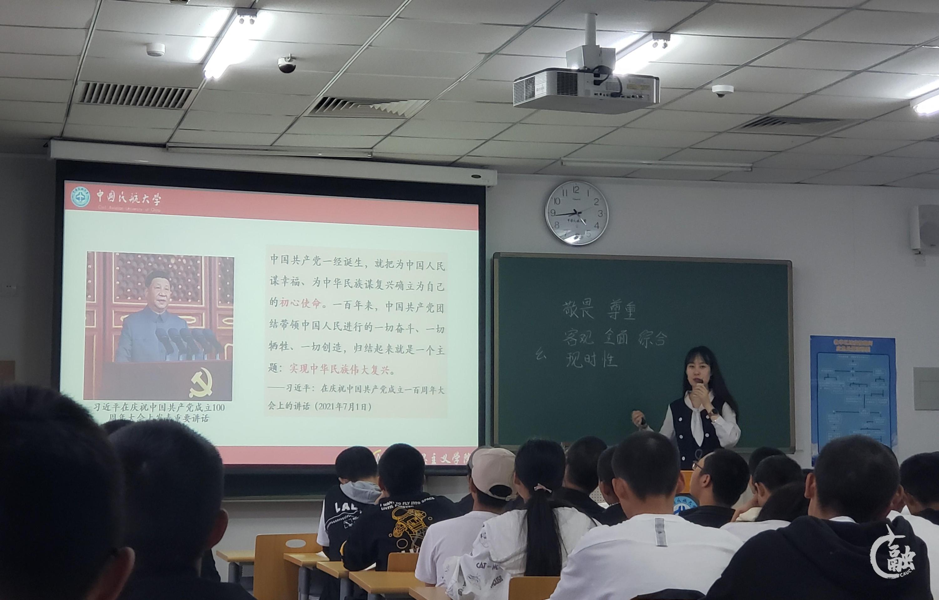 在本科生首堂思政课上,马克思主义学院纲要教研室教师么冬霞把“七一”讲话中提出的新思想、新观点、新论断有机融入导论课程的讲授。围绕为什么学、学什么、怎么学,引导学生深刻理解学习中国近现代史的重要意义,明确只有认真学习历史,特别是中国近现代史和中国共产党历史,才能够深刻认识和把握中国社会发展的客观规律,才能够更好地成长成才,成为担当民族复兴大任的时代新人。