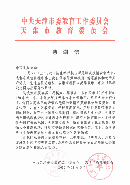 本网讯 近日,天津市教育两委致信感谢taptap下载安装安卓学生为天津市抗击新冠肺炎疫情表彰大会作出的贡献。