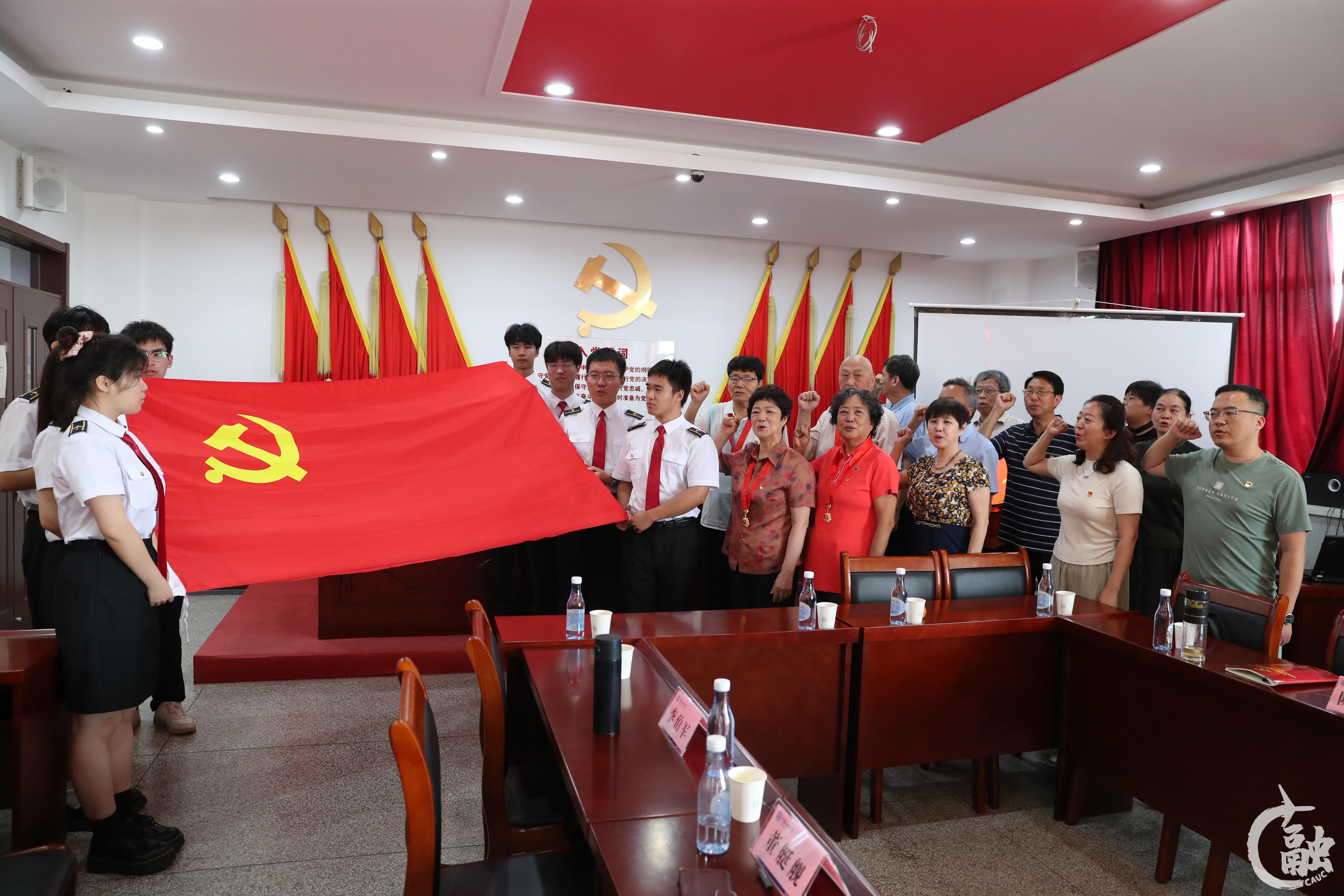 座谈环节,老党员们以亲身经历诠释对党的忠诚。周德新教授从“党的温暖哺育、教育事业发展、祖国繁荣强盛”三个维度深情讲述,勉励青年“以奋斗擦亮青春底色”;刘晓梅同志手捧纪念章数度哽咽,细数投身社区文化传承的点滴,感慨“生逢盛世何其有幸”;刘陆江同志以“退休不褪色”的坚守,在社区服务中践行“全心全意为人民服务”宗旨;柴慈珩同志重温入党誓词,直言“入党是一生的承诺”。第七党支部党员代表寄语青年:“珍惜时代机遇,以实干书写人生答卷!”学生代表曹久哲激动回应:“老党员的爱国情、报国志震撼心灵,吾辈定当传承红色基因,为交通强国民航篇章贡献青春力量!”