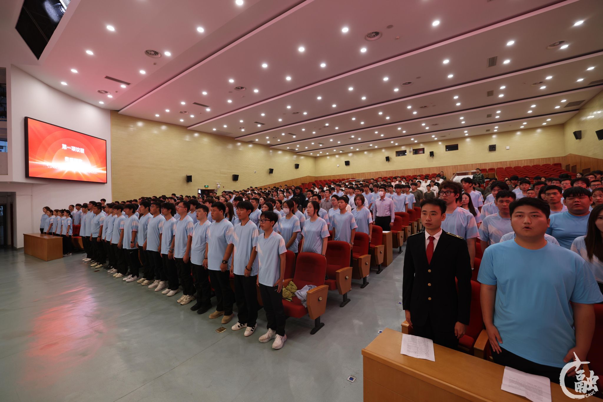 典礼在庄严的国歌声中拉开帷幕,全体起立,高唱国歌,昂扬向上的精神风貌充满了整个礼堂。