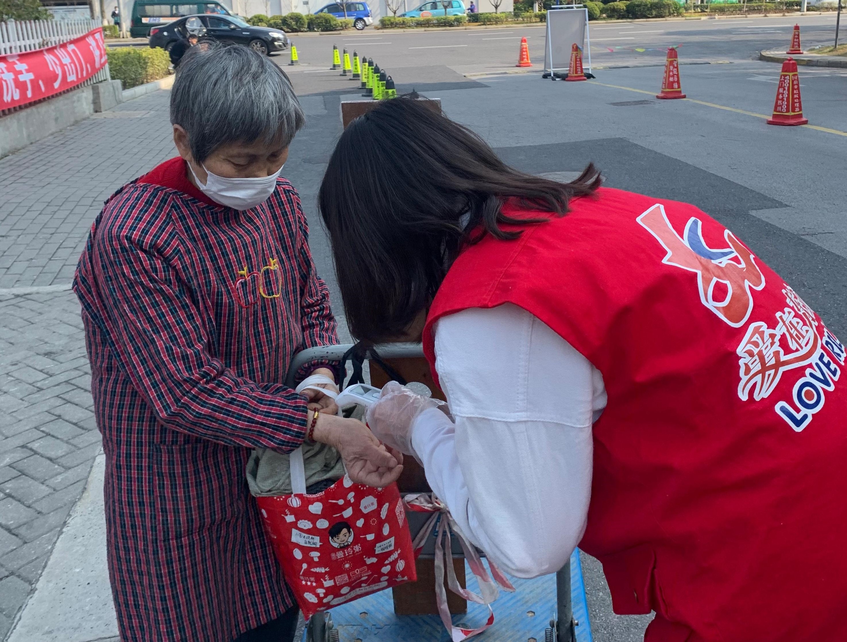 瞿陈露在小区门口进行志愿服务