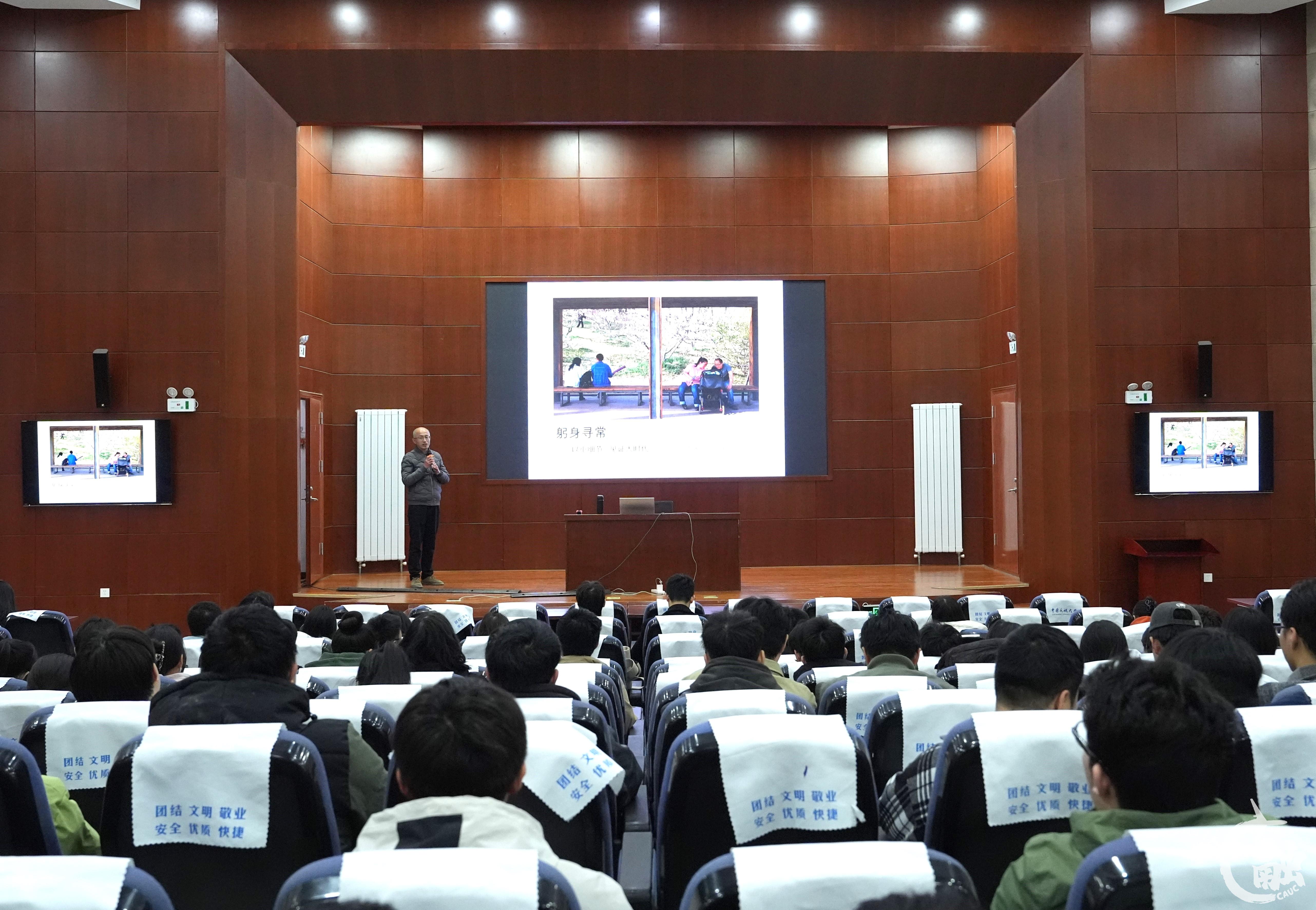“著名摄影家阿龙·瑞宁格认为好照片应该体现出三个特点:重要(importance)、能打动人(striking)、完美无缺(perfect)。”姜宝成结合丰富的新闻工作经验,展示系列新闻摄影作品,并从摄影理论知识与作品艺术常识分析它们的新闻价值、视觉表达、镜头语言、技术细节等内容,讲述作品背后的故事,向师生们展示新闻工作者的脚力、眼力、脑力和笔力。