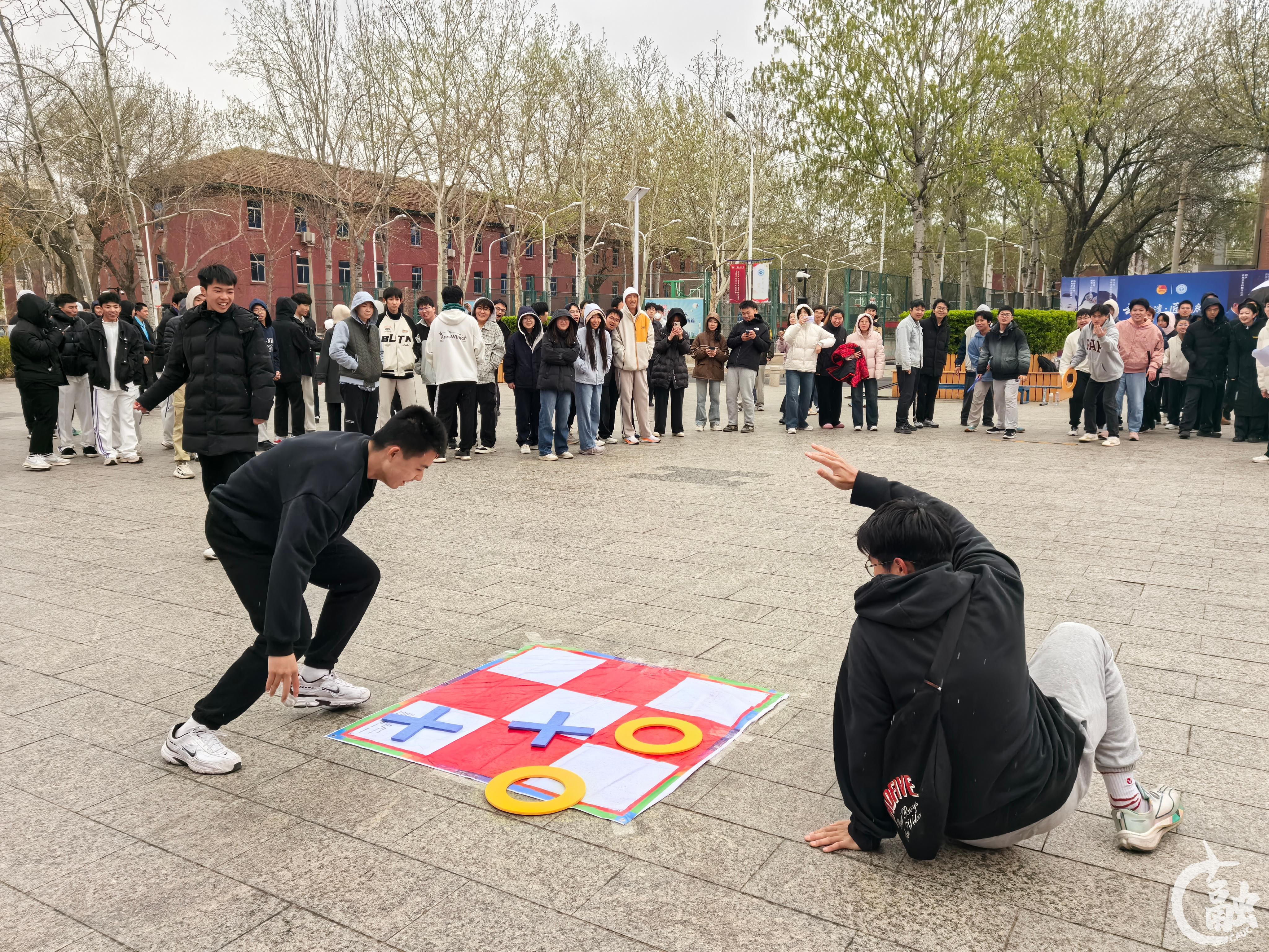 活动现场气氛热烈,即便比赛后半程春雪纷飞,师生们的热情依然高涨。在“极速三子棋”赛区,参赛者紧盯棋盘,思维碰撞火花四溅;“不倒森林”项目中,队员们屏息凝神,精准传递每一根杆子,失误时的鼓励与成功后的欢呼交织成动人的青春乐章。参赛师生以智慧、汗水与欢笑诠释“运动疗愈心灵”的深刻内涵。