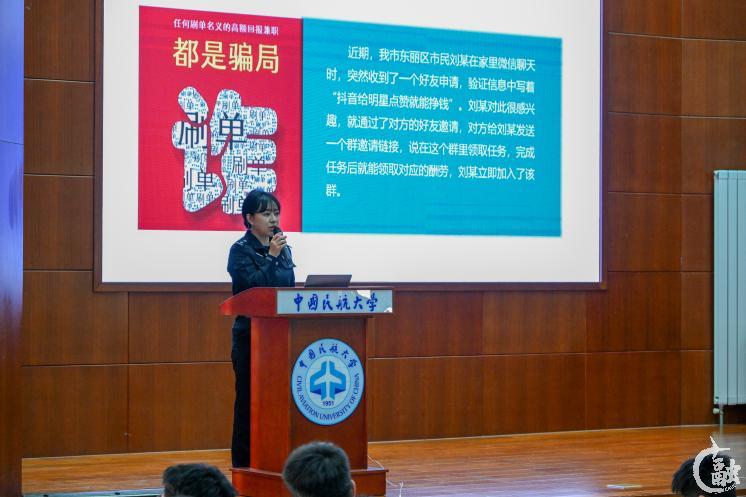院级实践精准落地,彰显专业育人特色。空中交通管理学院邀请天津市反诈中心民警白梦婕开展反电信诈骗讲座,结合真实案例,从诈骗手段、大学生兴趣点、防诈口诀等方面进行讲授互动,为学生们敲响防诈警钟;外国语学院打造“安全+外语”品牌活动,推出双语版《安全手册》,举办安全主题外语角及跨国安全文化分享会,以英、日、俄等多语种讲解地震应急等安全知识,构建“语言赋能安全”新范式;乘务学院以赛促学、以赛代练,开展“筑牢安全防线·共创和谐校园”案例分析大赛,收集学生制作的安全案例45项,以真实案例讲解、真实故事演绎等多种形式,将安全意识真正融入学生学习生活各方面。