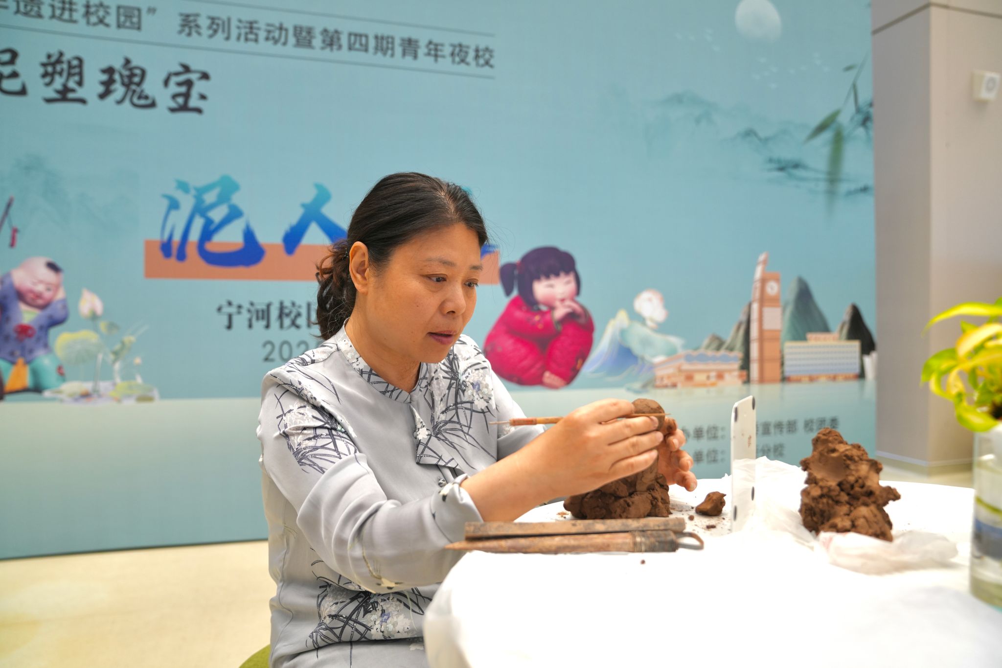 富心悦老师现场演示泥塑创作过程