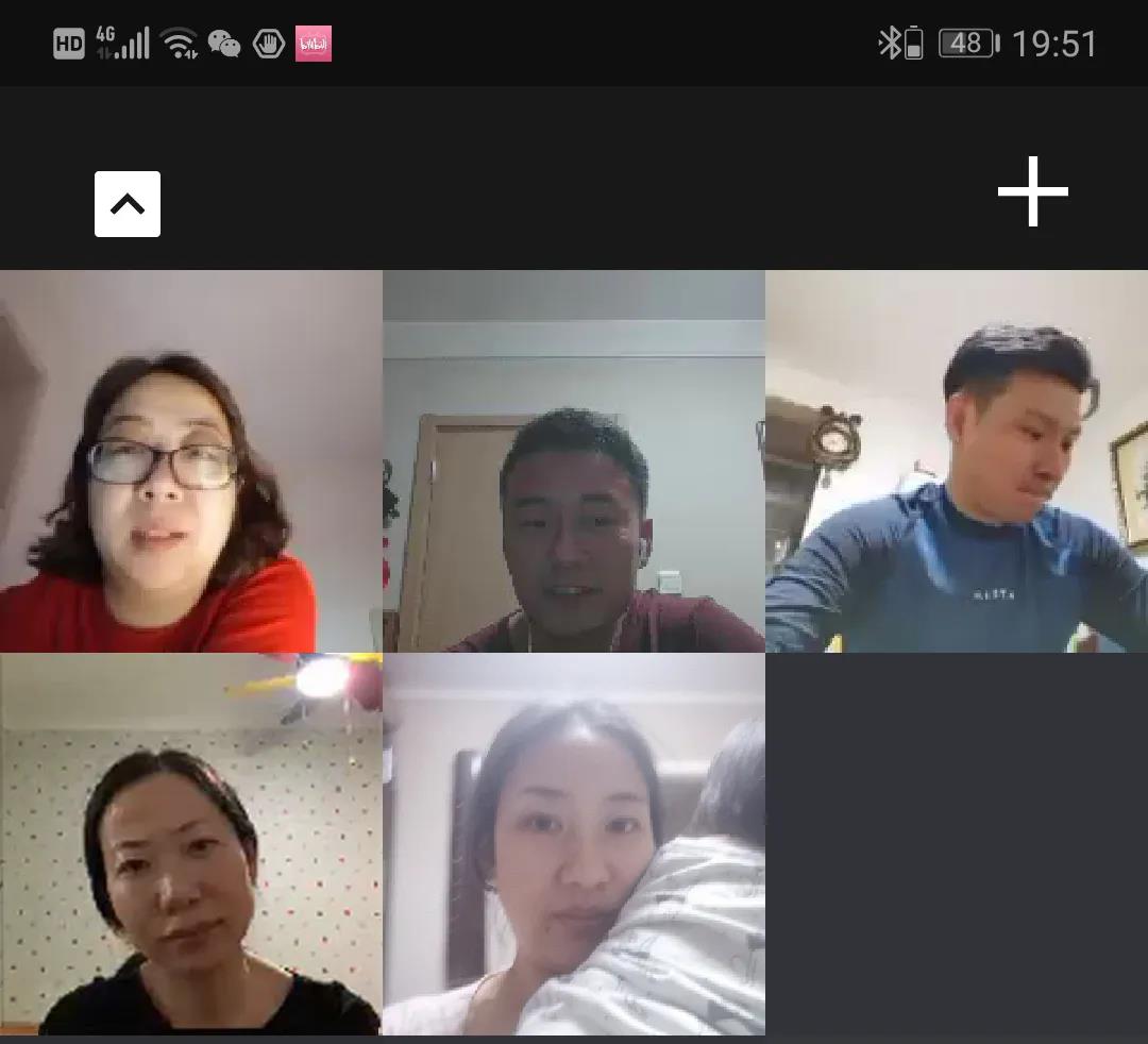 陈红叶(第二排中间)抱着小女儿在家开选题会