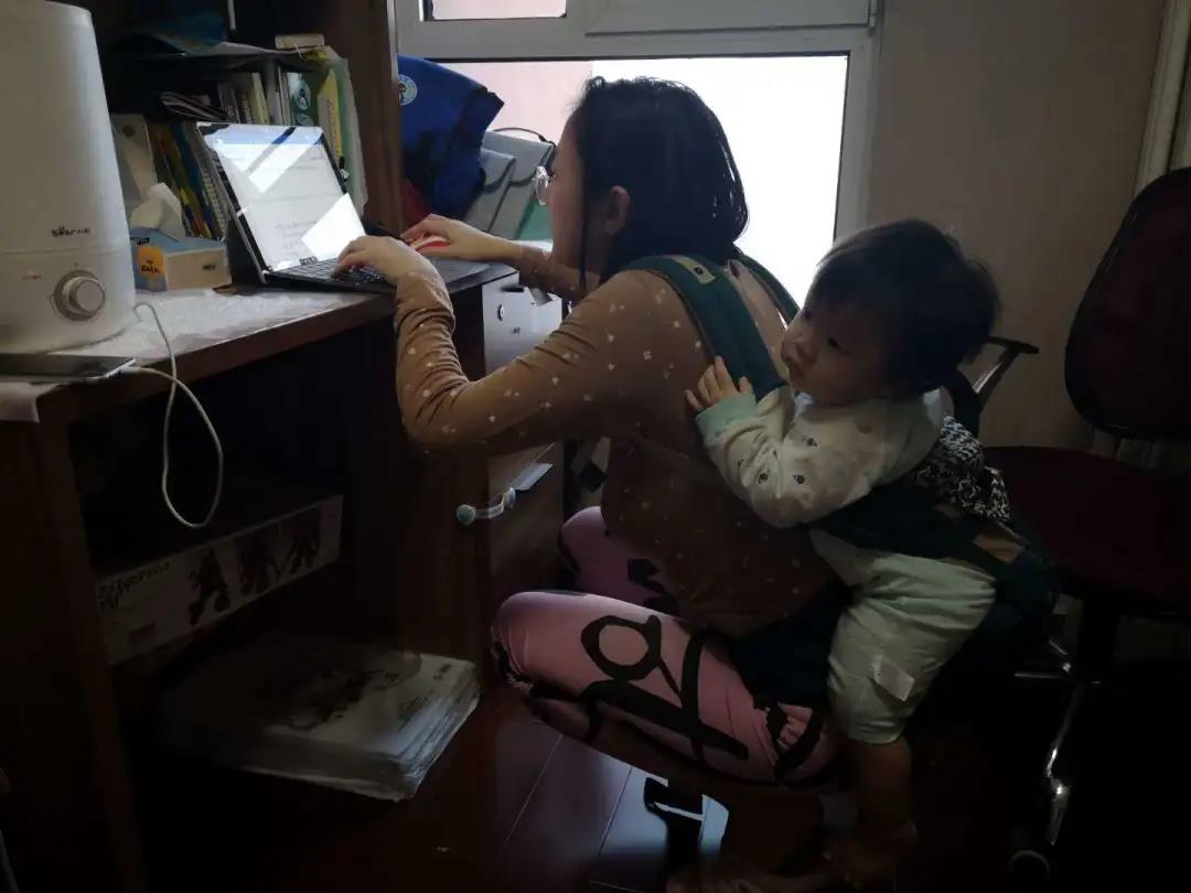 直播结束时,已经是晚饭时间,陈红叶1岁的女儿在小围栏中用渴望的眼神望着她,小胳膊带着半个身子探出围栏,咿咿呀呀地求抱抱……背着娃做饭的杂技已经不是第一次上演,背着娃娃开选题讨论会、背着娃写稿子……女儿都快成为了她工作中的吉祥物。晚饭的时候,陈红叶本来是想看个视频放松下,看到微信工作群弹出的对话框条件反射的就点了进去,结合选题给出她自己的意见和建议。
