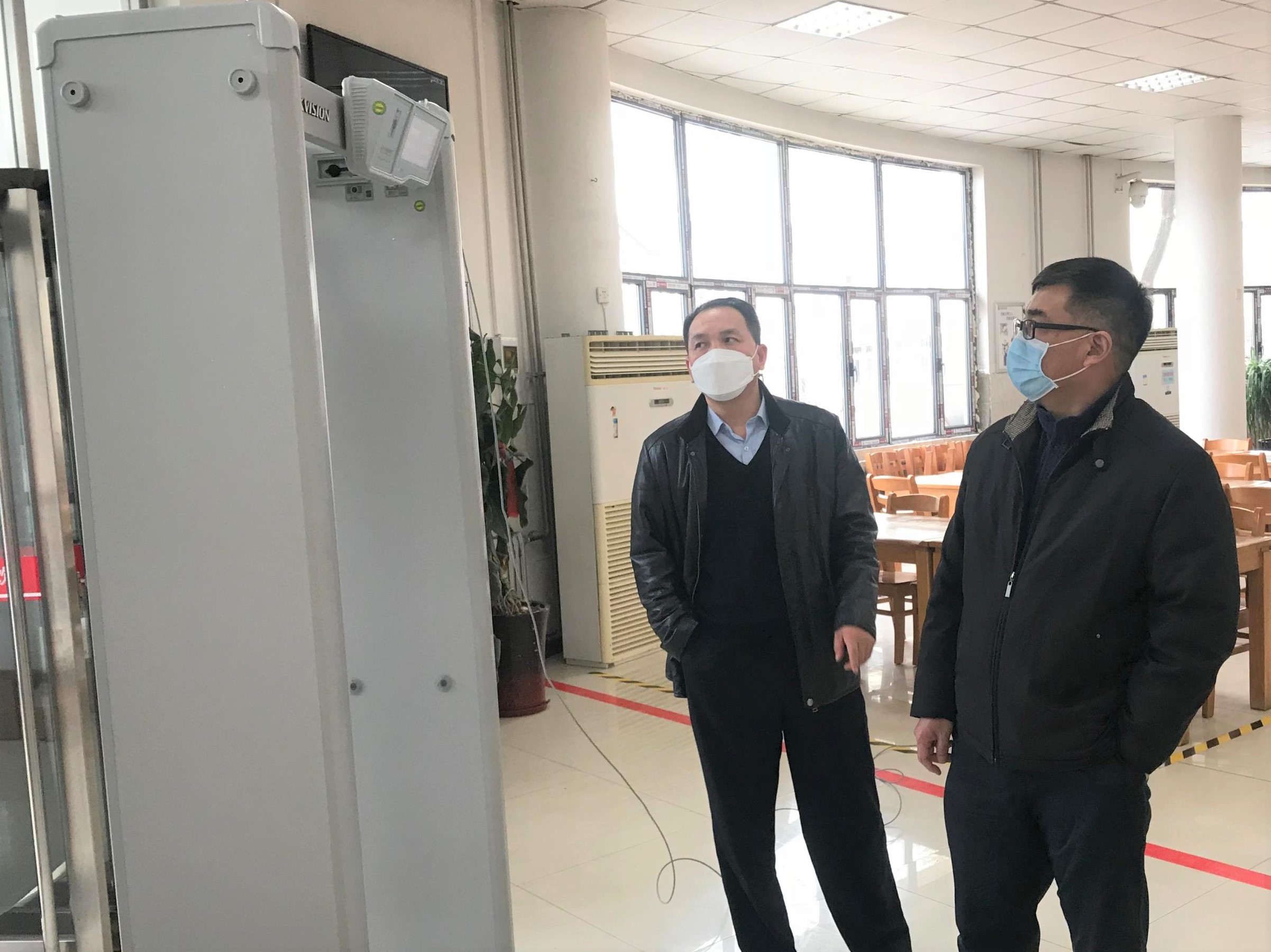 吕宗平来到南区食堂,重点检查热成像测温门系统体温检测流程、就餐方式和人员分流方案。同时详细了解菜品设置、餐位摆放、后厨管理和防疫宣传等具体工作。他指出,针对食堂复餐方案,要注重静态和动态管理相结合,进一步做细做实应对措施。随后,吕宗平一行来到食堂库房,查看食材物资储备情况,同时叮嘱做好后续物资补充工作,提前筹备,未雨绸缪,统筹规划各项工作。