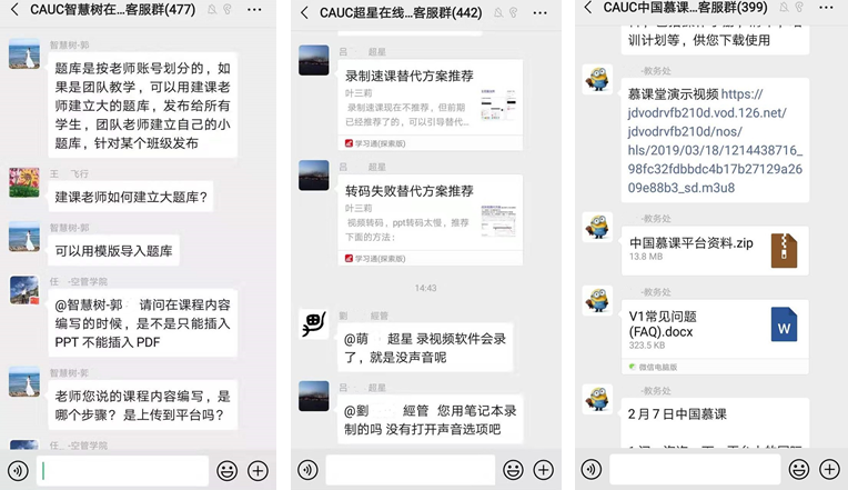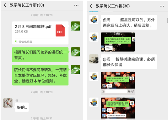 教务处协调几大平台公司及时搭建线上教学工作服务群组,每个服务群组都有超过400余名教师加入,实现平台公司与学校一线教师无缝对接互动,为教师们提供答疑解惑、线上指导、专项培训等服务。广大教师积极学习网上建课、教学资源使用、远程授课等必要的操作方法,紧锣密鼓地做好开课前的准备工作,切实维护教学秩序,以生为本,认真备好每一堂课,确保每一个学生都有课可选、有课可学。
