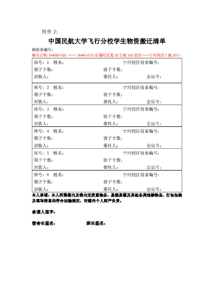 团结协作,安全搬迁。进入6月以来,飞行分校各职能部门、各大队按照搬迁工作实施手册的既定计划,对全体在校学员召开“搬迁工作安全教育主题大会”,讲细节、传方法、解疑惑,确保前期搬迁工作平稳、有序进行;搬迁工作正式开始后,飞行分校党委书记、副书记带领全体辅导员深入宿舍一线,进行现场调度,指导学生按要求完成宿舍整理、行李打包、物品归置工作;宿舍整理完毕后,各职能部门、各大队协同配合对全体学生宿舍进行安全大检查,逐一检查、交互检查,确保无安全隐患、确保按要求归置行李。