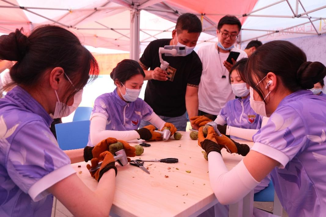 比赛正式开始后,学生拿上专业的工具,开始大显身手。对很多学生而言,吃核桃可能是一件再平常不过的事了,但剥核桃却是一件相对陌生的工作。虽然初次参加,但一点不影响学生的积极性。为了尽量多剥一点核桃,队员们神情高度专注,手中的工具也不停地翻转,不一会,去了皮的白白嫩嫩的核桃就出现在同学们的手中。