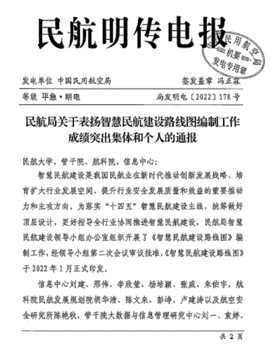 获得民航系统表扬通报